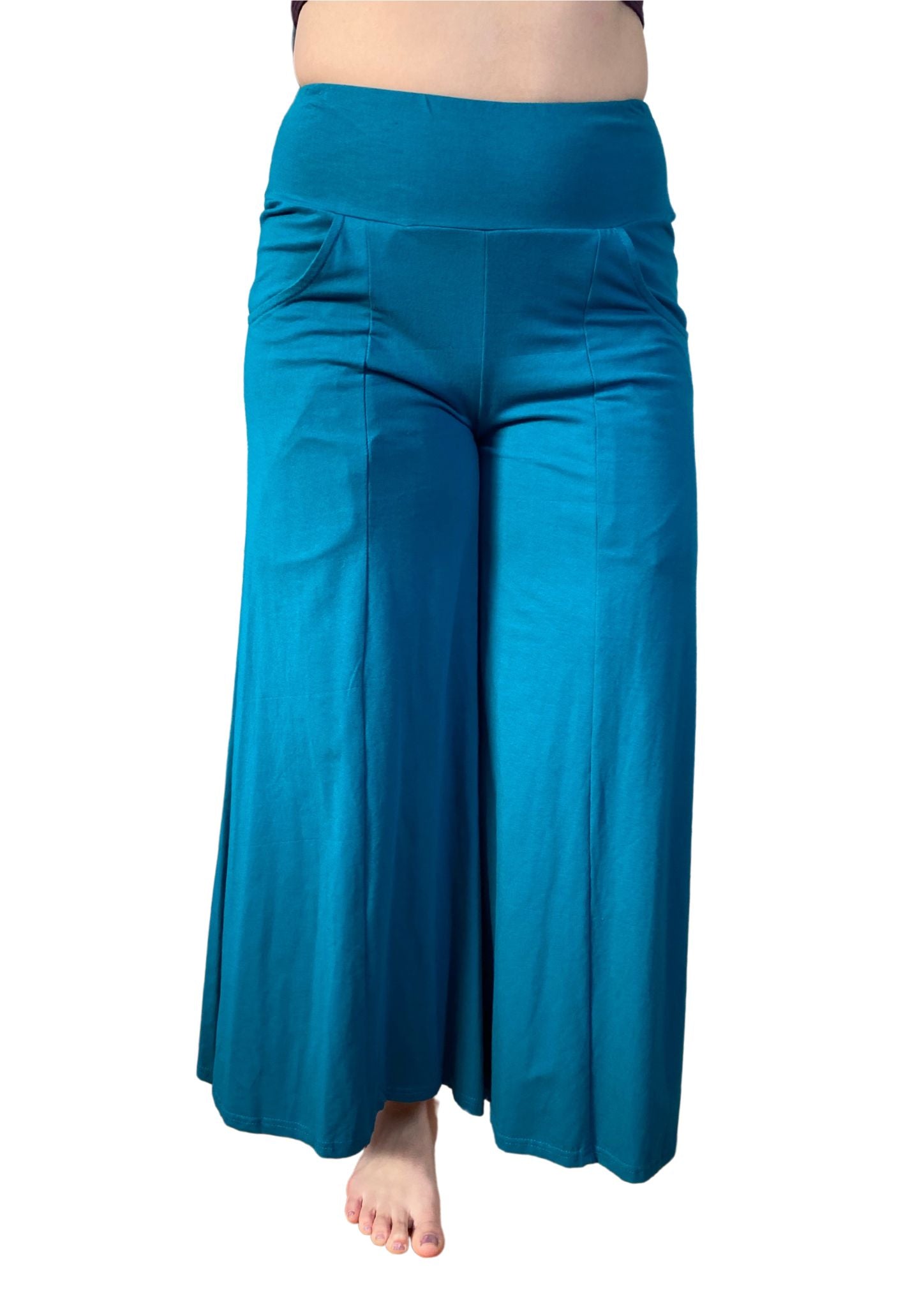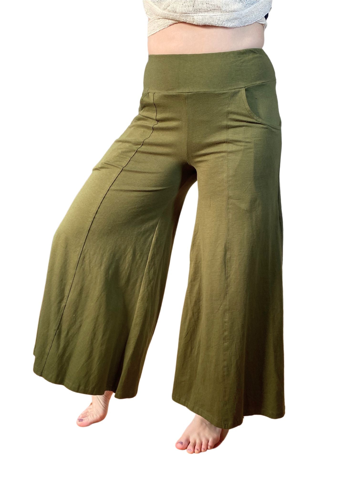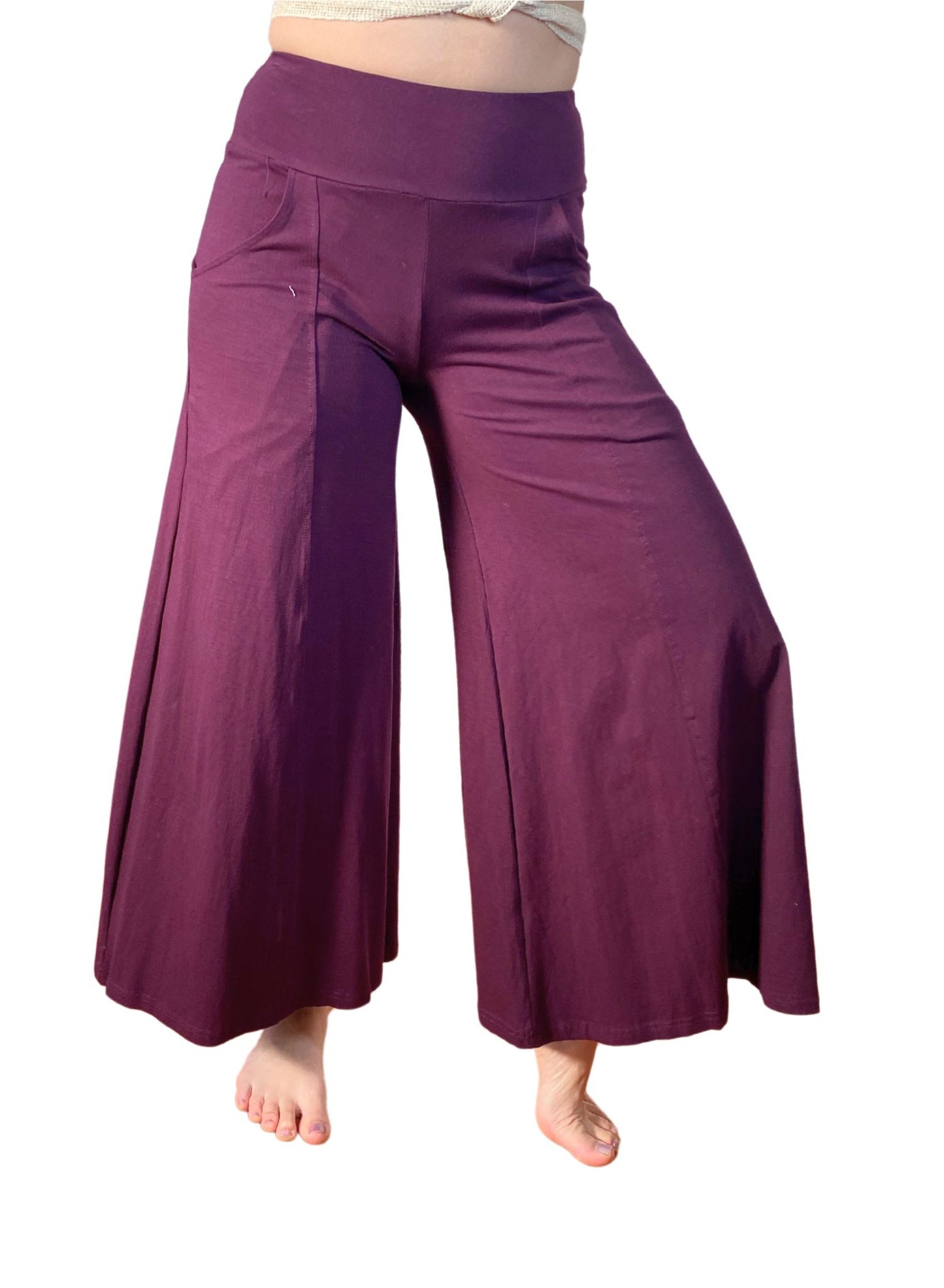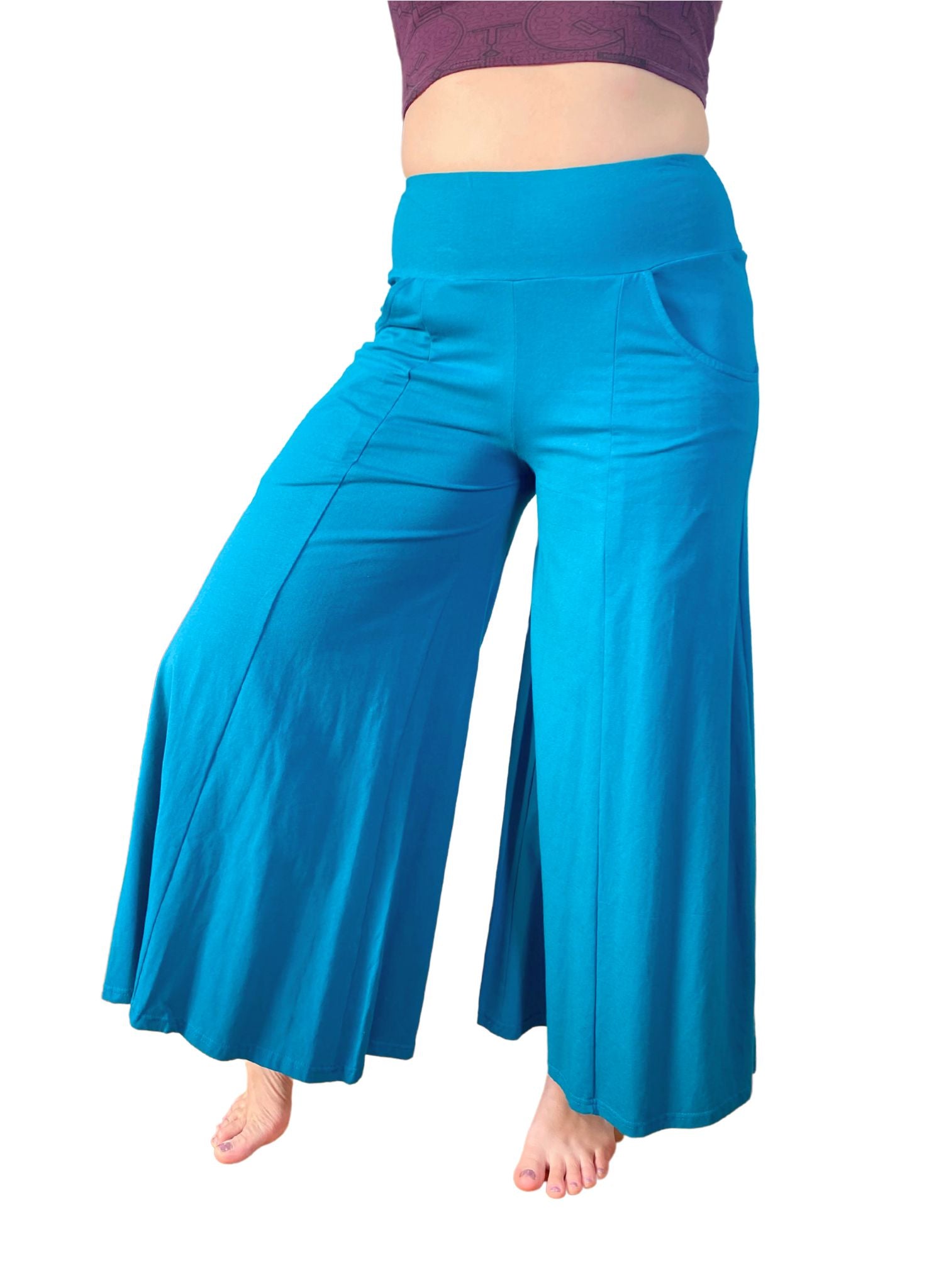 Cotton-Lycra Wide-Leg Pocket Pants – Palazzo Style for Yoga, Dancing, Festivals, and Everyday Wear