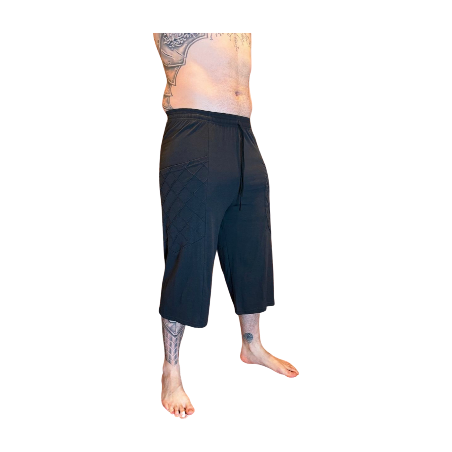 The new wave of shorts, this time with our lovely lucid print! This super soft, comfortable Cotton jersey is a hardy fabric that washes and wears well while keeping its cool esthetic. This sacred print makes a statement in any event. Just feel like hanging out or dancing all night these pants are built to stand by you!