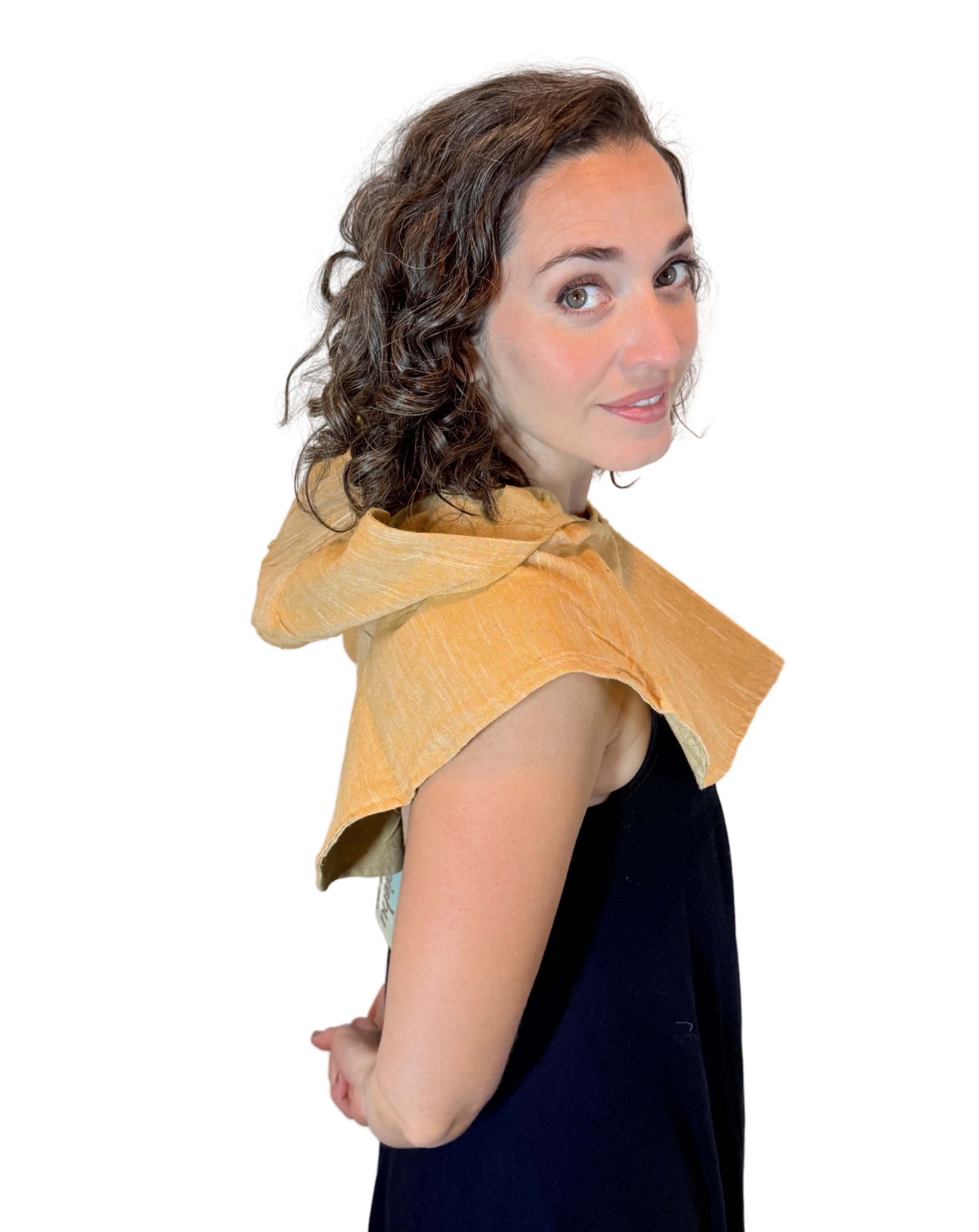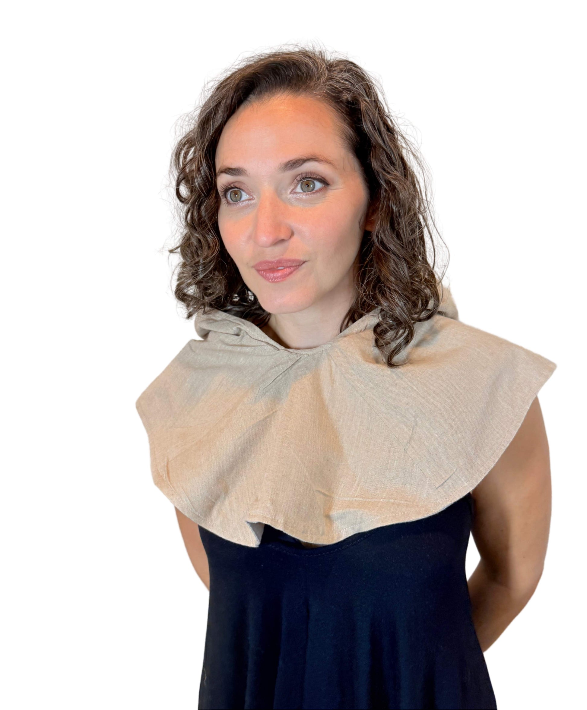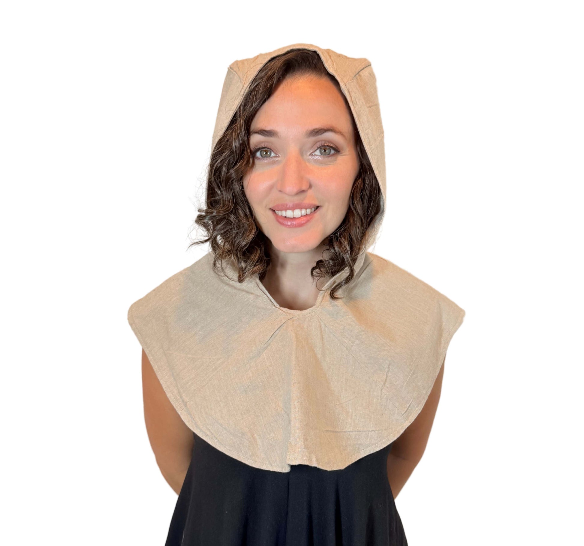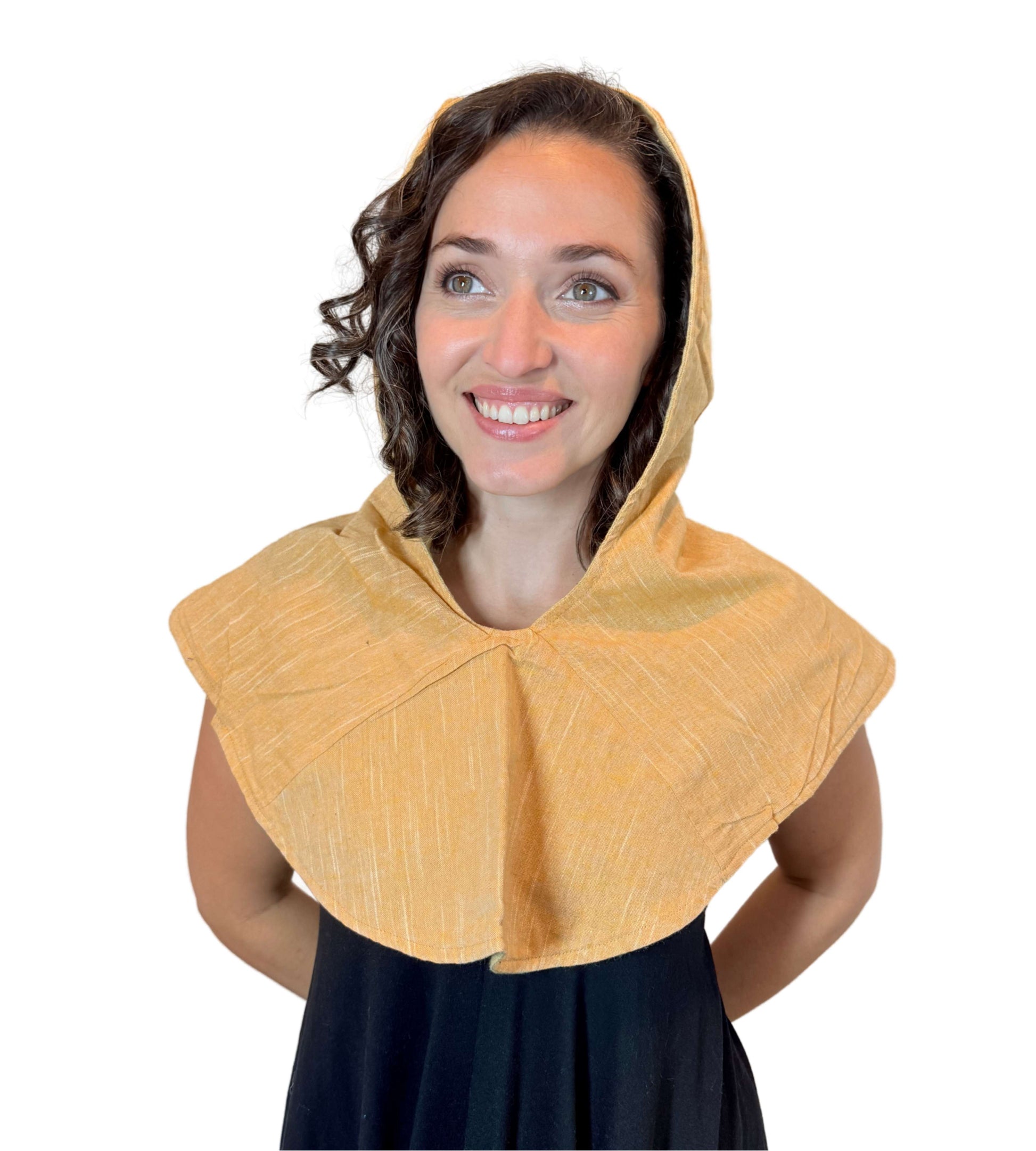 Stay stylish and protected with the Aura Hood, a cotton woven hood designed for Renaissance fairs, medieval festivals, and boho-inspired outfits. The extra collar fabric drapes elegantly to shield your neck and shoulders from the sun while adding a touch of fantasy and medieval aesthetic.