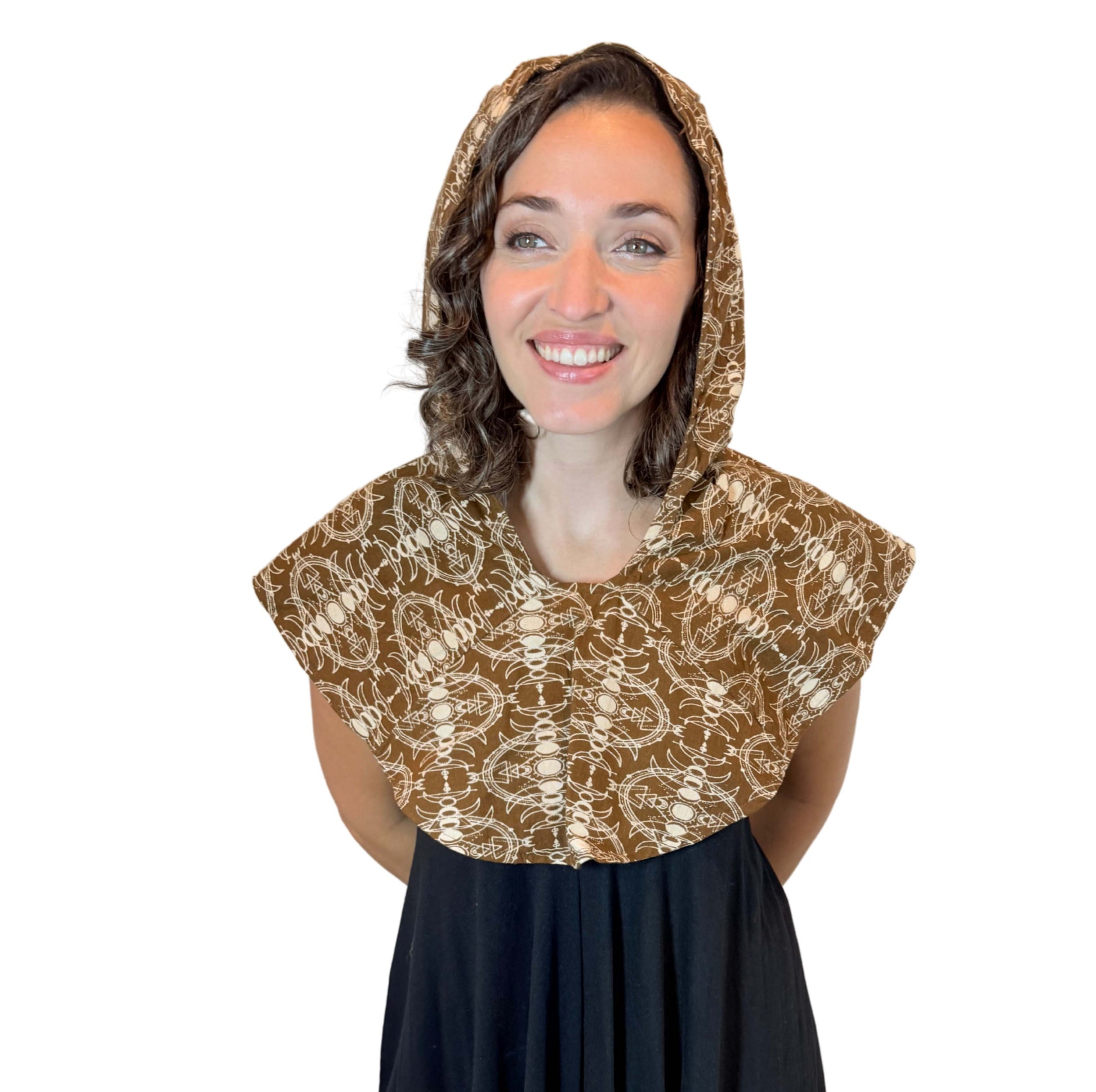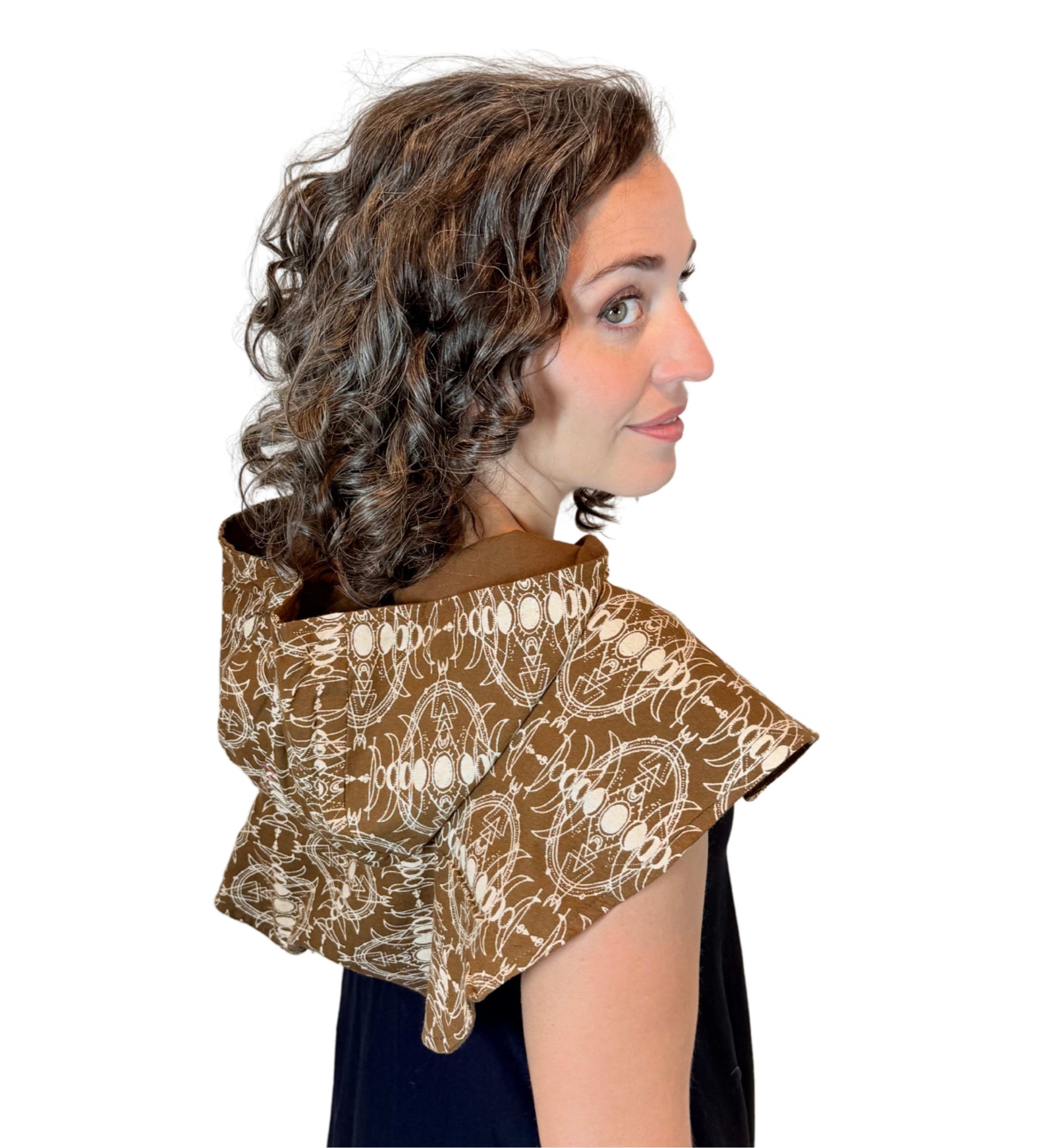 Perfect for festival-goers, historical reenactors, or anyone seeking whimsical sun protection, the Aura Hood pairs beautifully with tunics, dresses, or layered costumes, adding both practicality and flair. Lightweight and breathable, it’s comfortable for all-day wear in the sun.