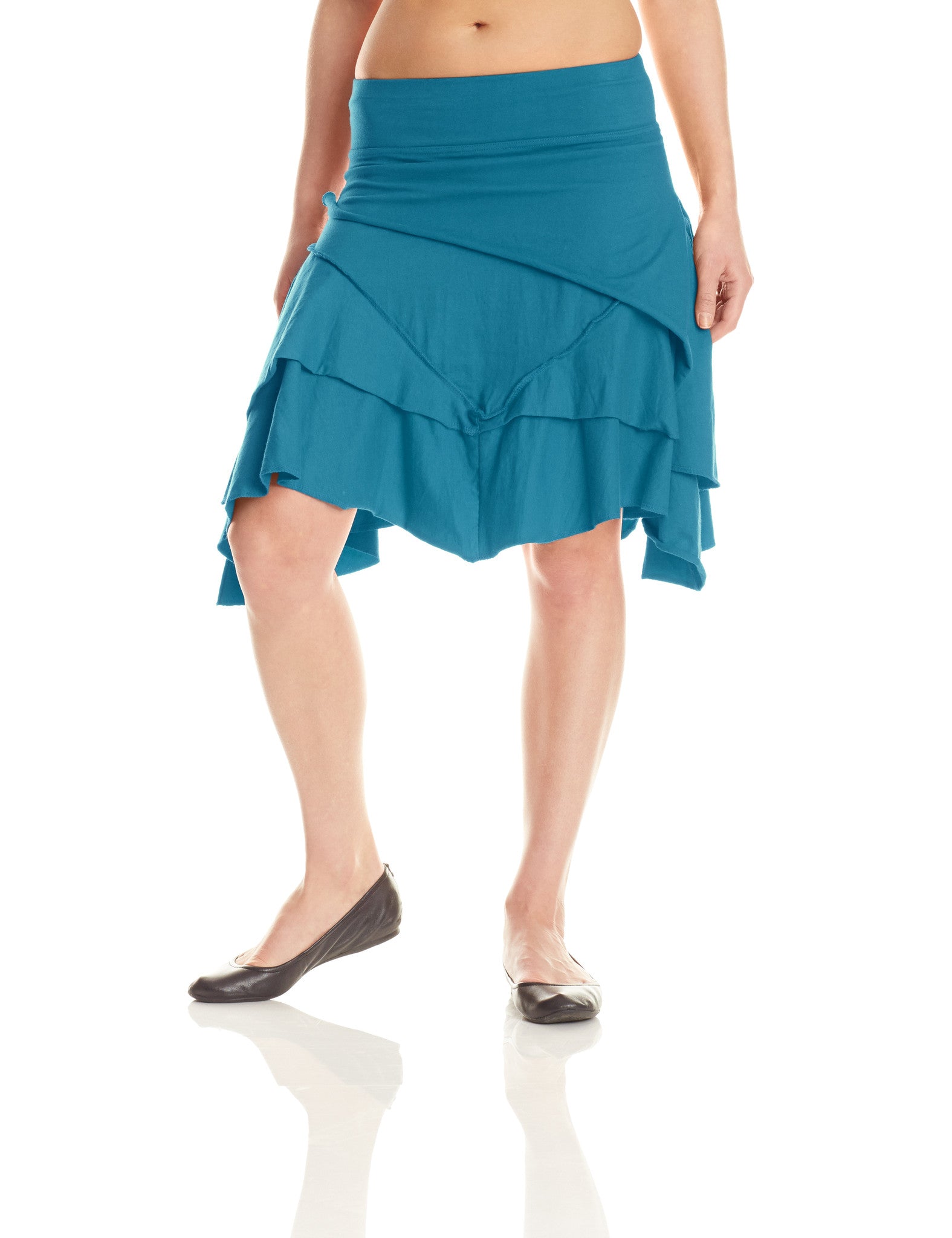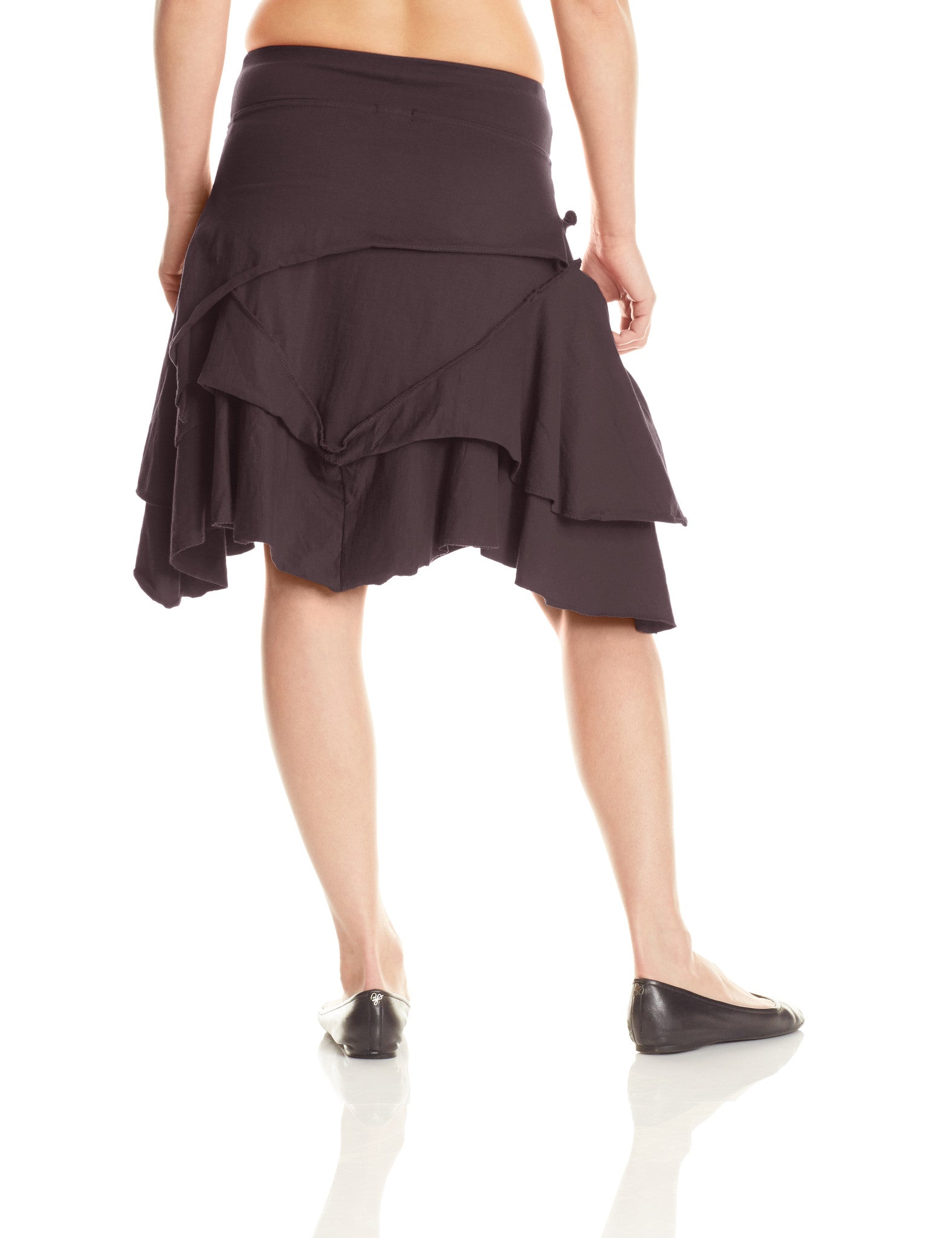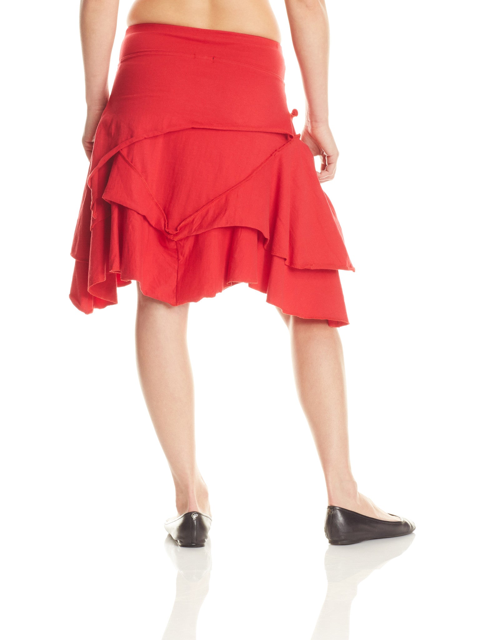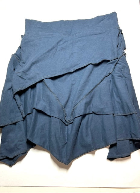Pirate Skirt is ready for some "Aaaarrghhh!" Multiple layers with exposed stitching and angled hems for a no-nonsense yet eye-catching aesthetic. Flirty and fun, this comfortable skirt adds style to any wardrobe. Knee length if worn at hip. A wonderful skirt for ladies with hips and booty.