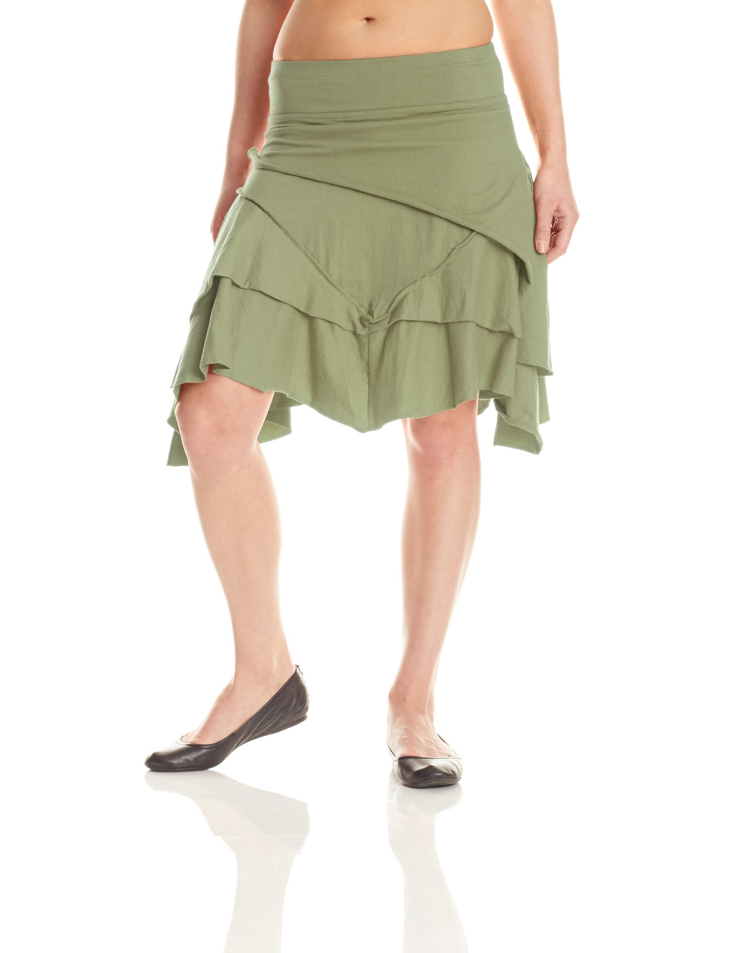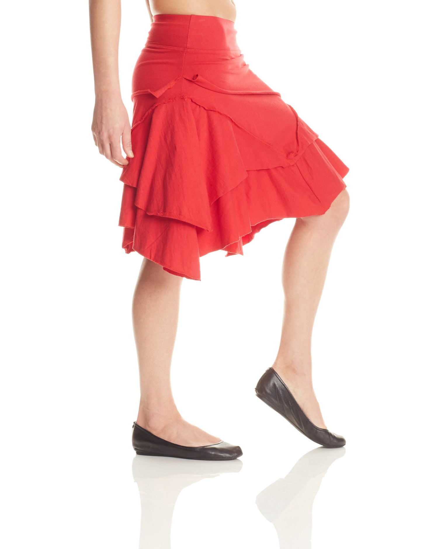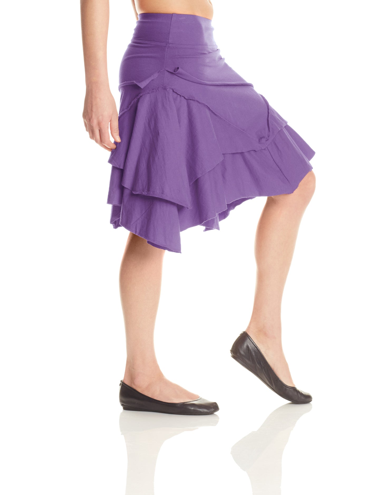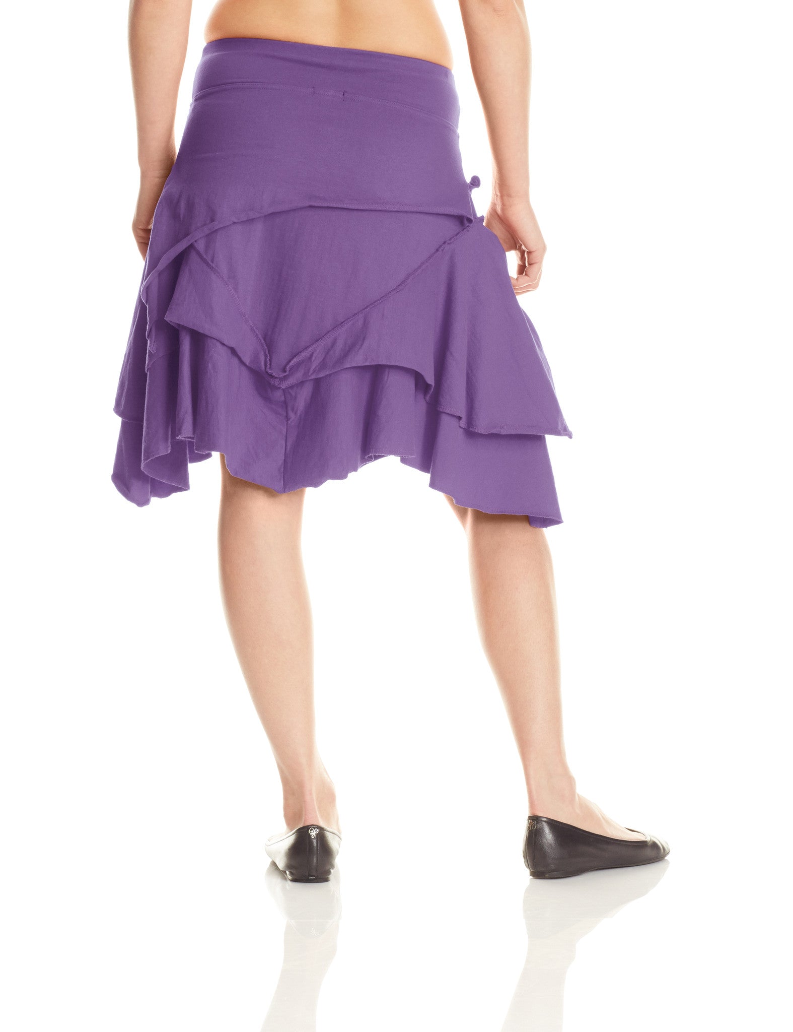 Pirate Skirt is ready for some "Aaaarrghhh!" Multiple layers with exposed stitching and angled hems for a no-nonsense yet eye-catching aesthetic. Flirty and fun, this comfortable skirt adds style to any wardrobe. Knee length if worn at hip. A wonderful skirt for ladies with hips and booty.