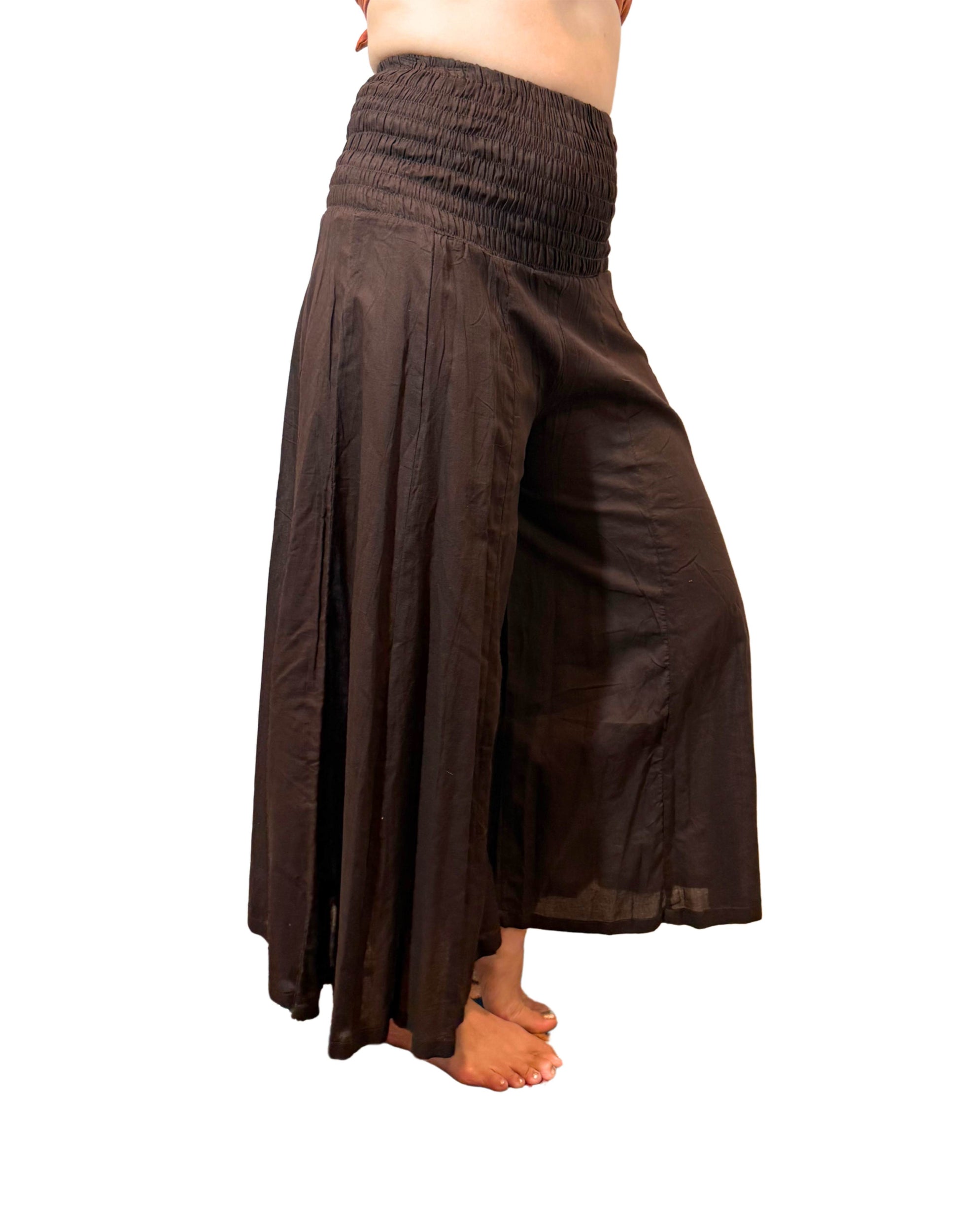 Step into effortless bohemian style with these cotton flow pants—wide-leg trousers that look like a skirt but offer full comfort and modesty with a double shorts layer underneath. Perfect for woodland, cottagecore, or fairycore fashion, these pants feature crochet lace accents and a woven elastic crochet waistband for an easy, flexible fit.