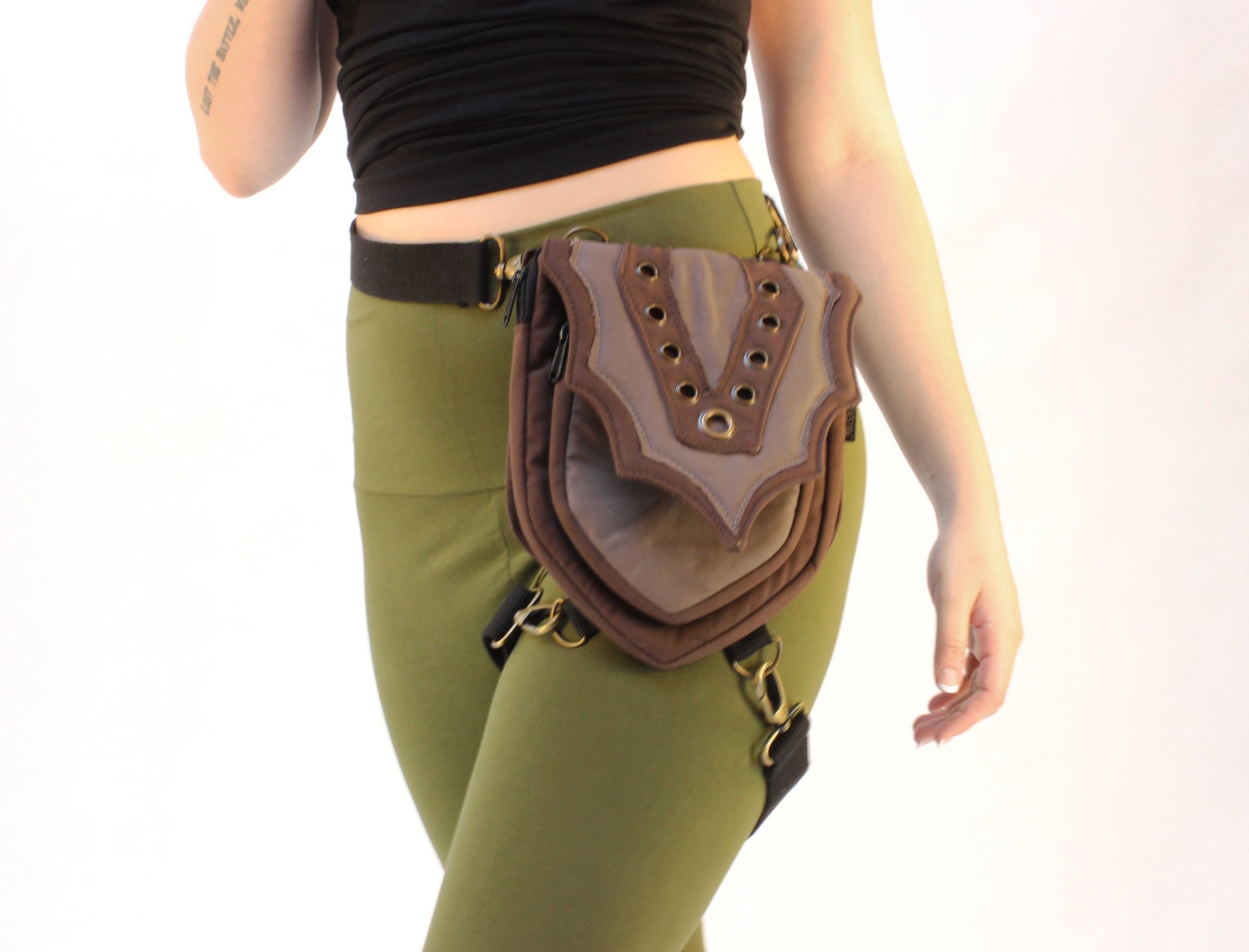 An ethereal bag, with scalloped edges and decorative grommets. Can be worn in our signature hip belt style, or remove the leg strap and wear as a purse.
