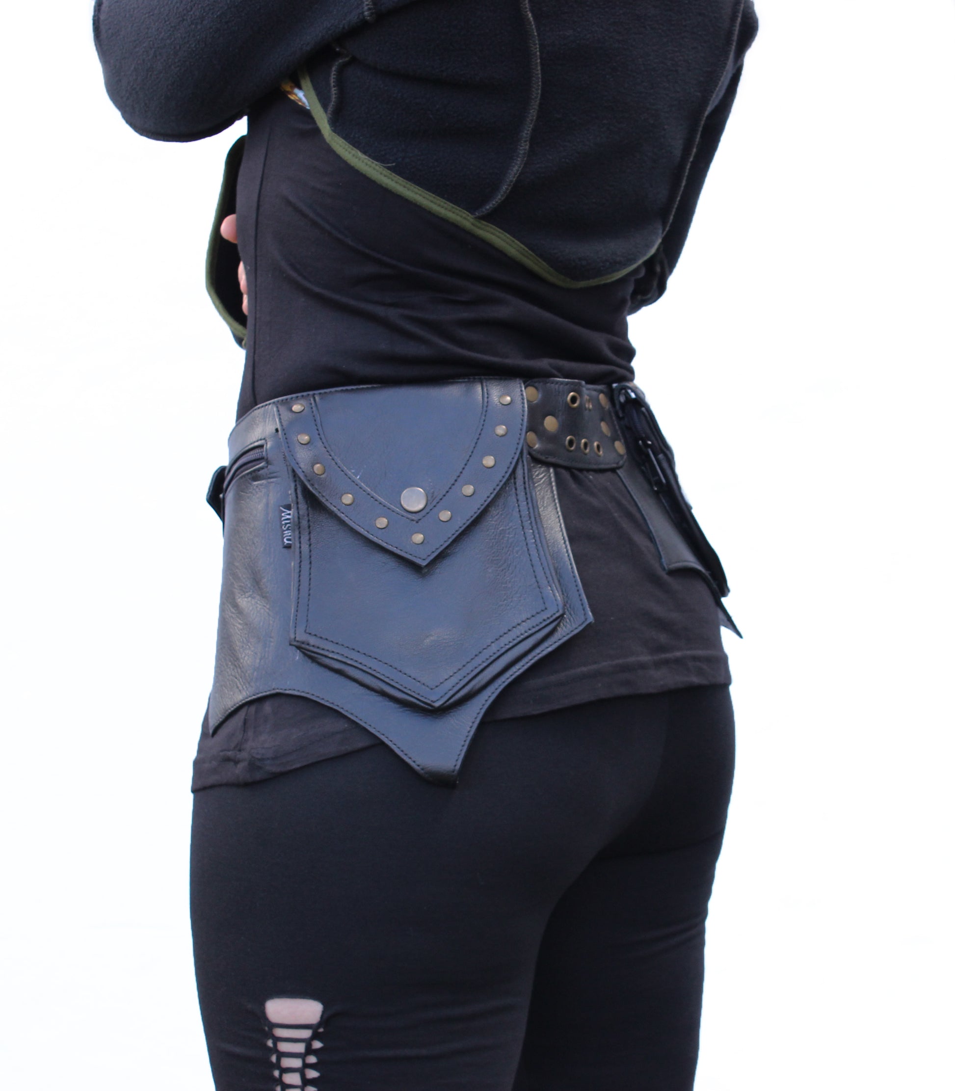 Extra spacious belt for all your treasure collecting! Made in leather for both durability and style. Multiple pockets fit most things magic and a small clip for attaching things prone to escaping. Secret pockets on the backside.