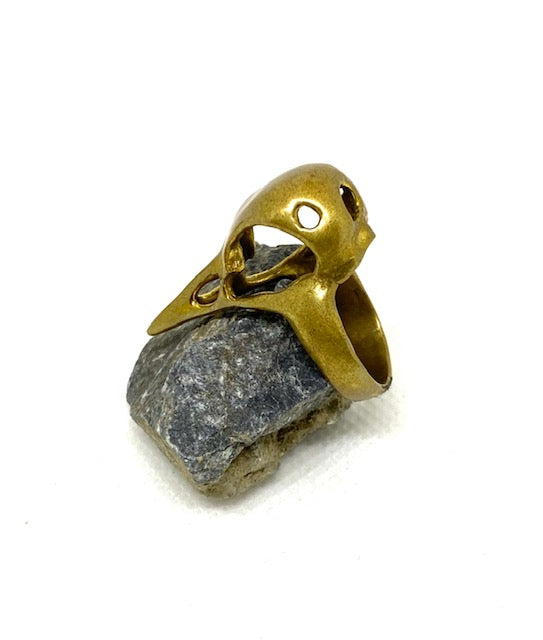 Ideal for those with a penchant for the mysterious, this ring serves as a token of admiration for these intelligent birds. Whether you're a corvid enthusiast yourself or seeking a unique gift for someone special, this brass raven skull ring is sure to delight.