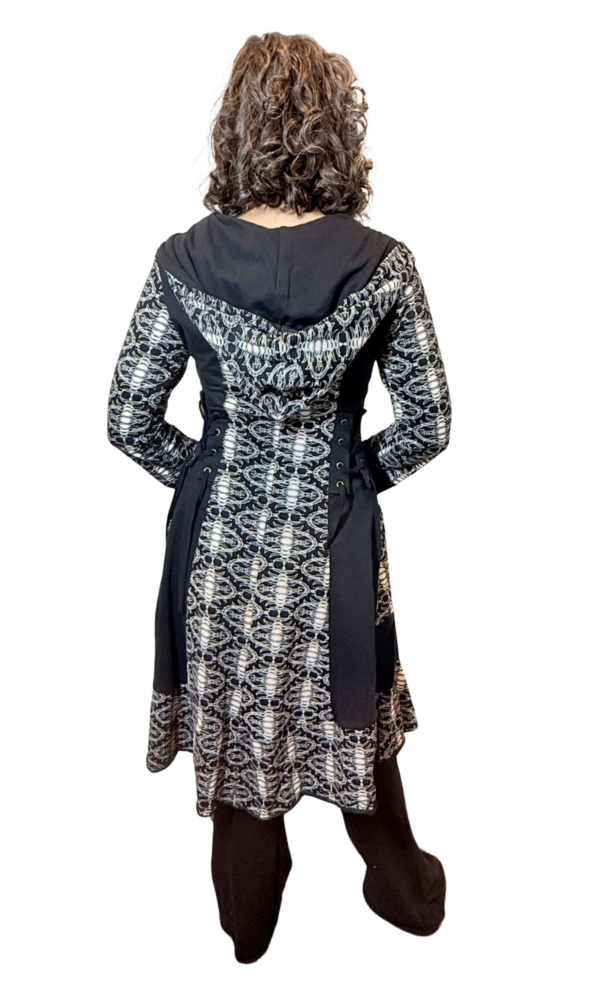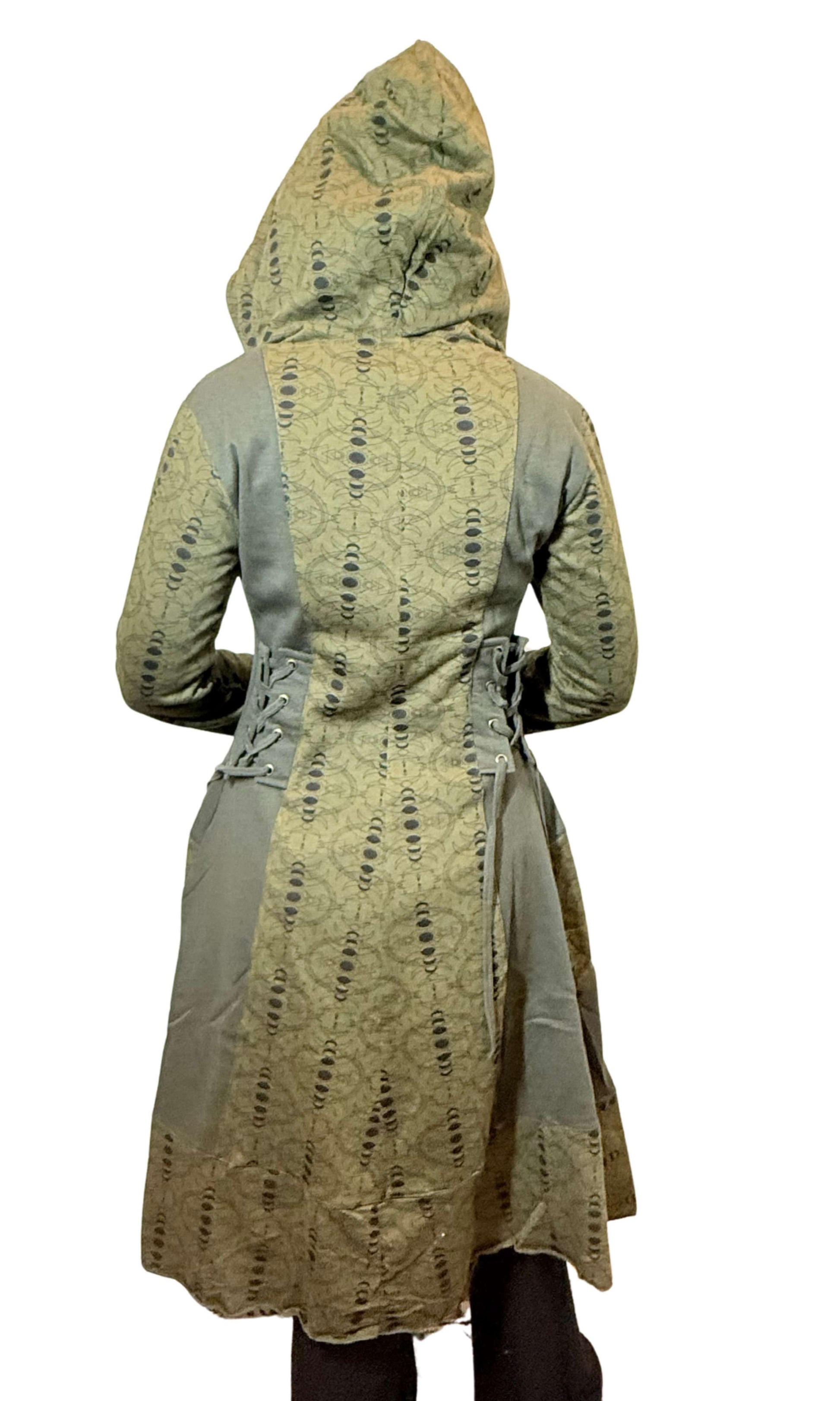 Channel positive energy in the Geo Jacket, a slim-fit coat designed with magical details. Made from soft, combed sweatshirt material, it’s cozy, warm, and perfect for everyday wear. Features include front pockets, adjustable back ties, a ruffle hood, and a drop-back hemline for a flattering fit.