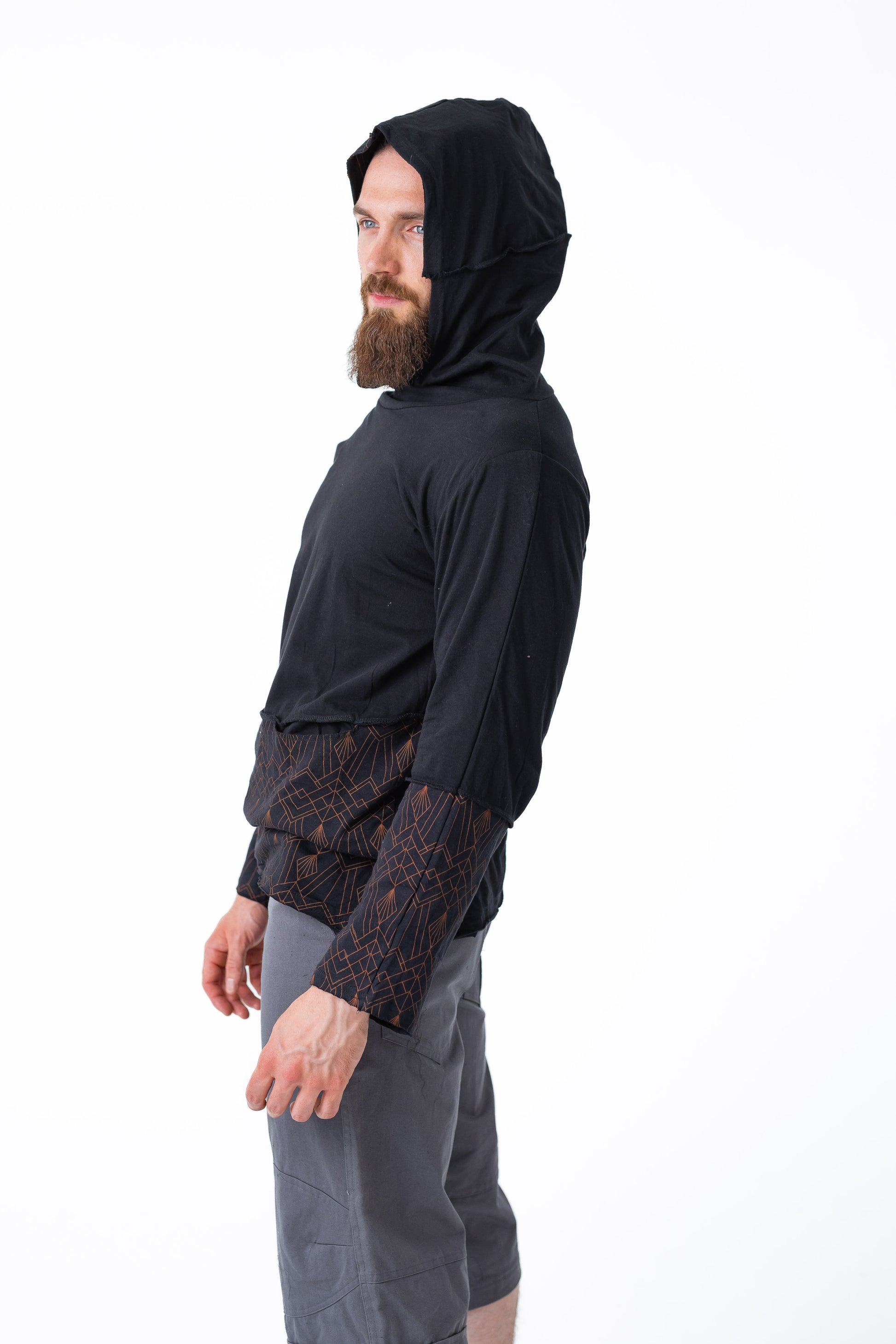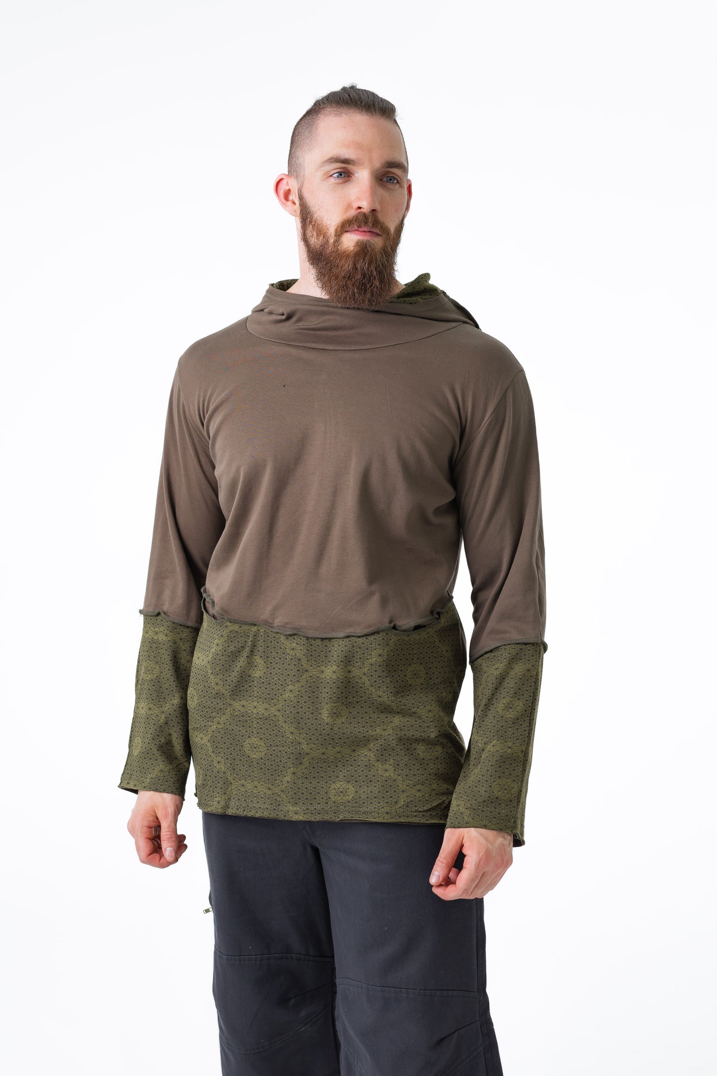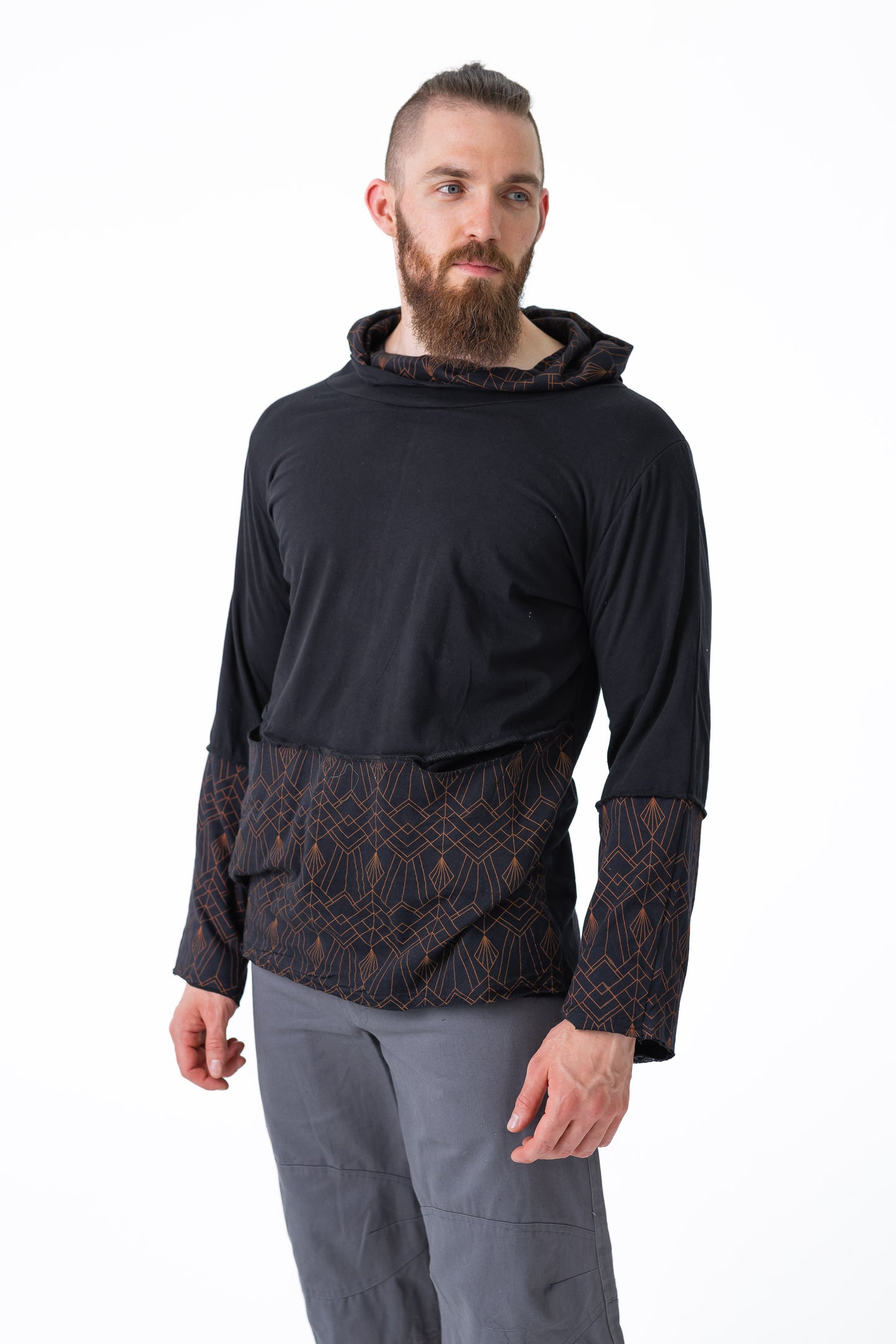 This comfortable cotton jersey shirt has a neckline inspired by the knights of old. Can be worn with jeans or shorts for a stylish look.