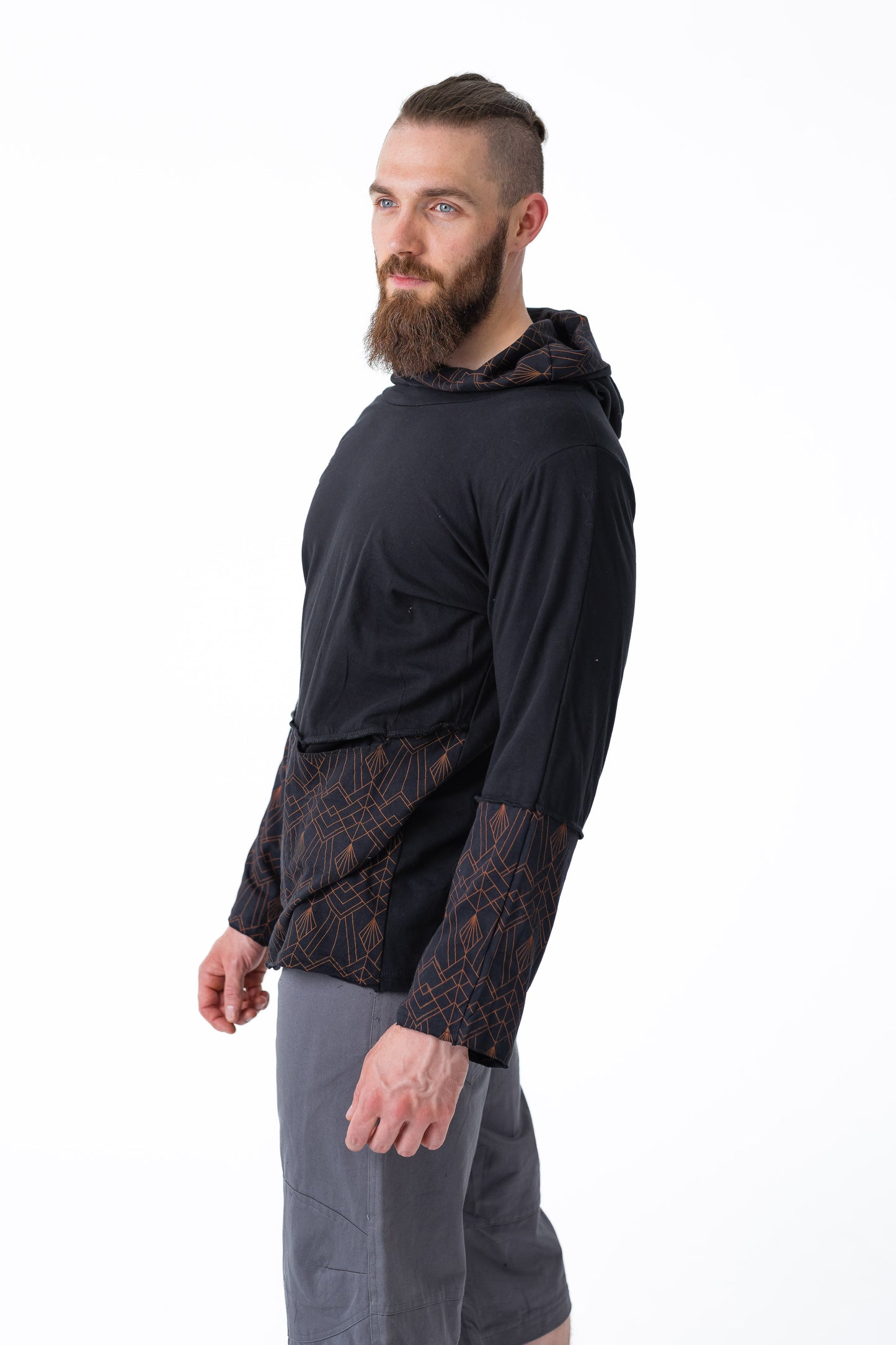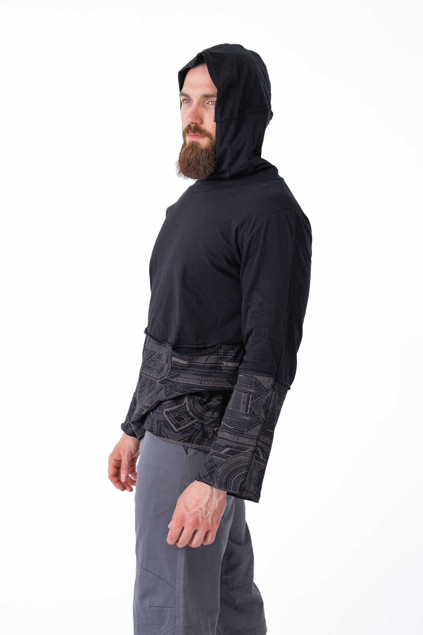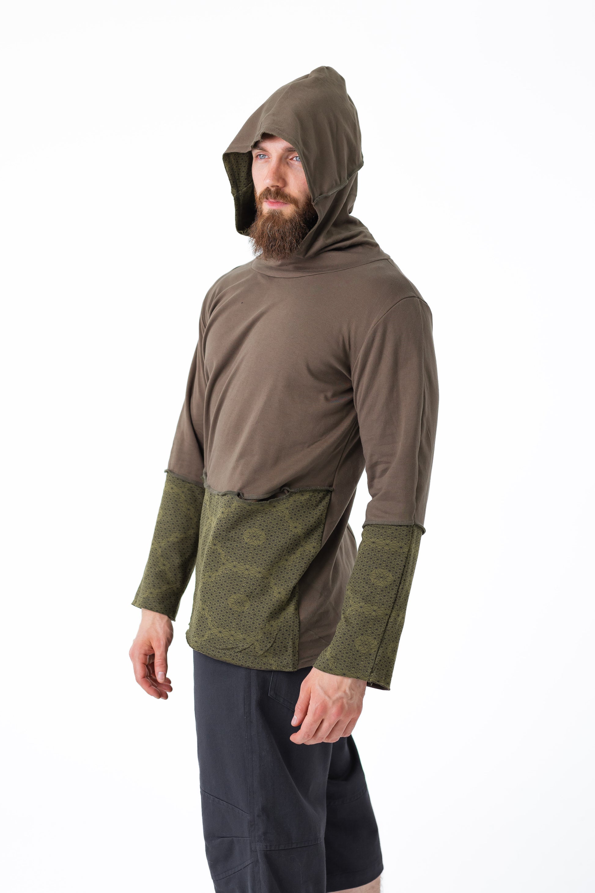 This comfortable cotton jersey shirt has a neckline inspired by the knights of old. Can be worn with jeans or shorts for a stylish look.