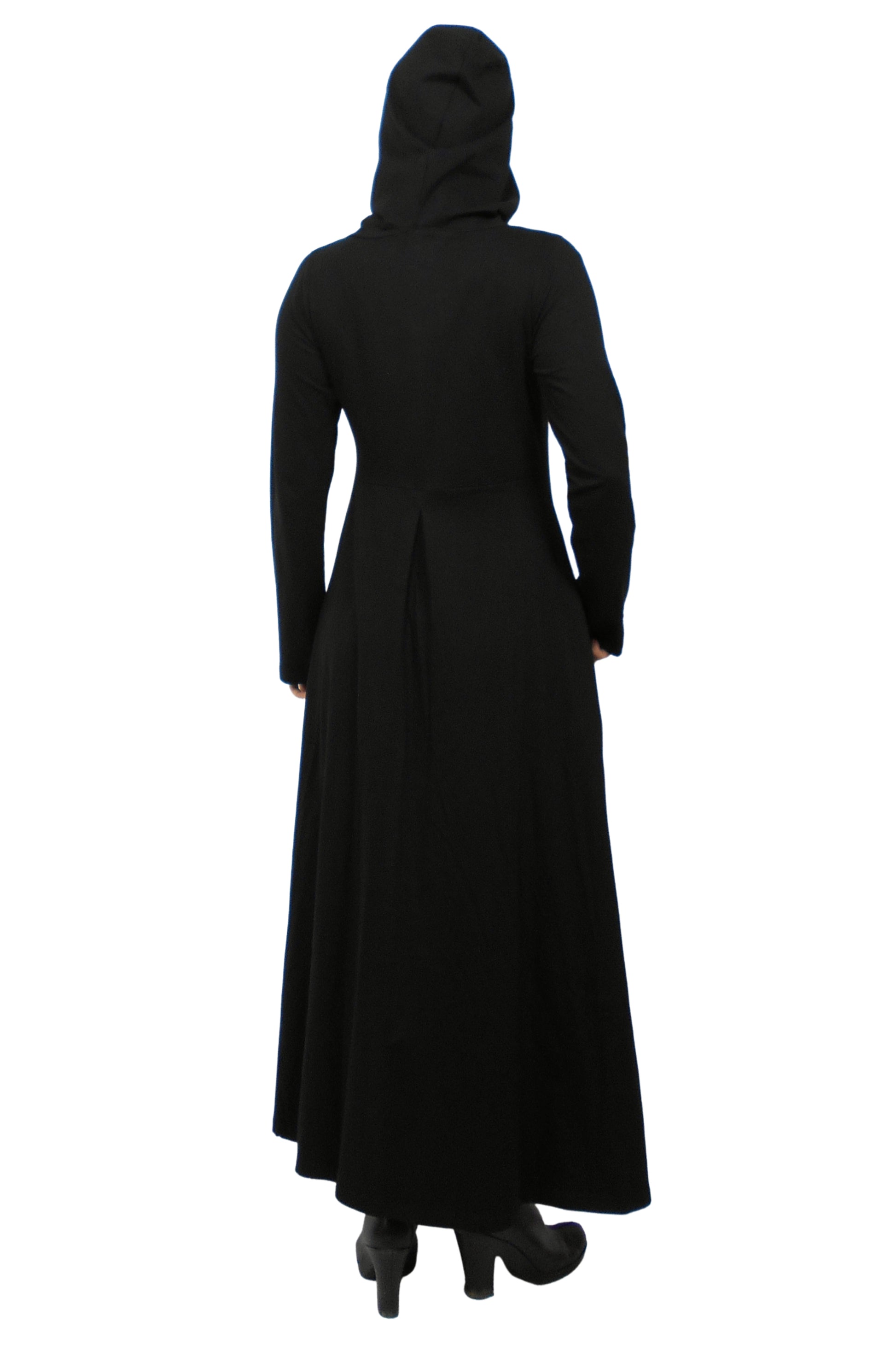 This long sleeved, hooded, maxi dress is the perfect dress for many occasions. It has deep front pockets perfect for keeping your hands warm. This dress is great without a belt but dresses up nicely with a belt.