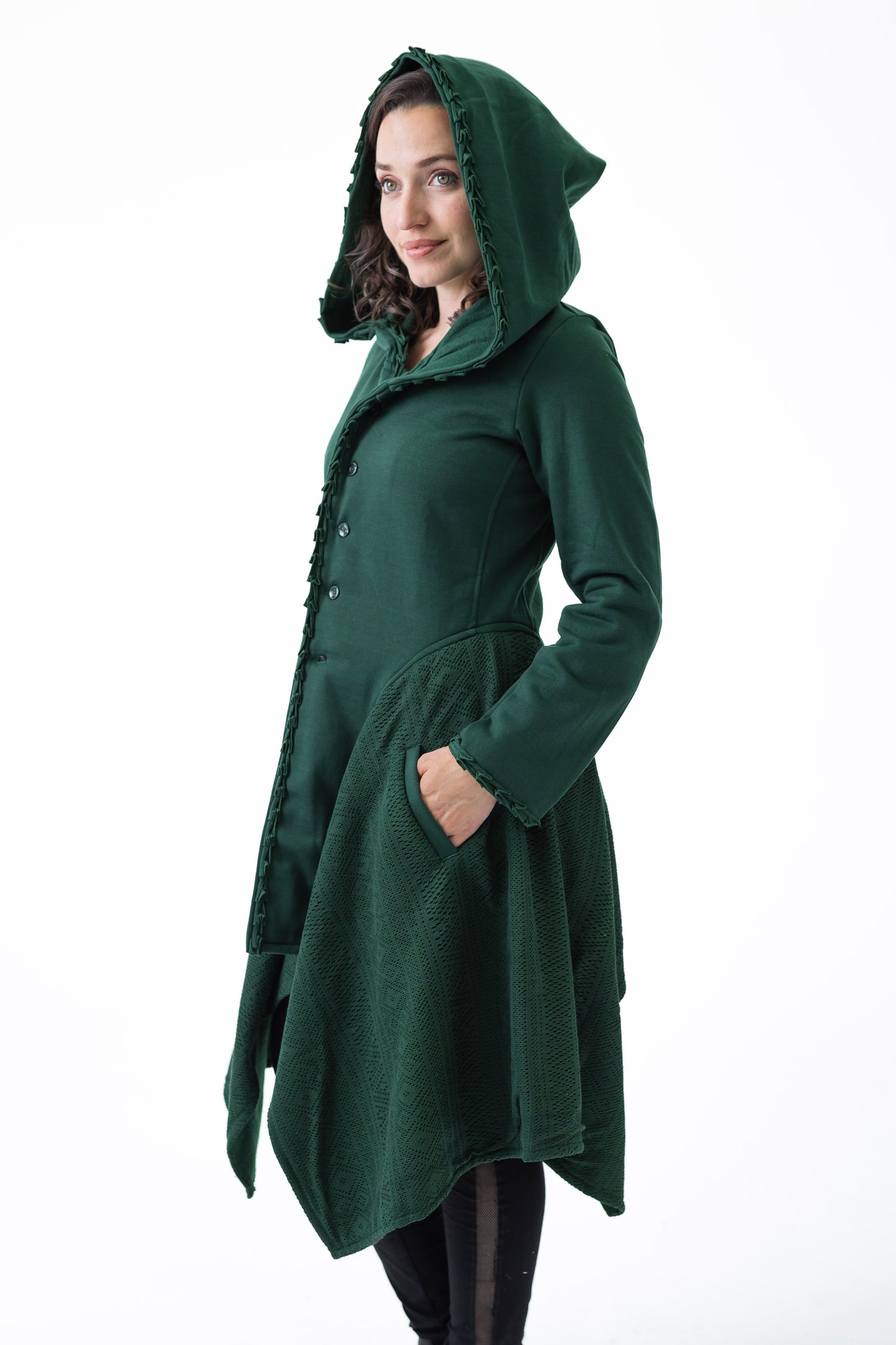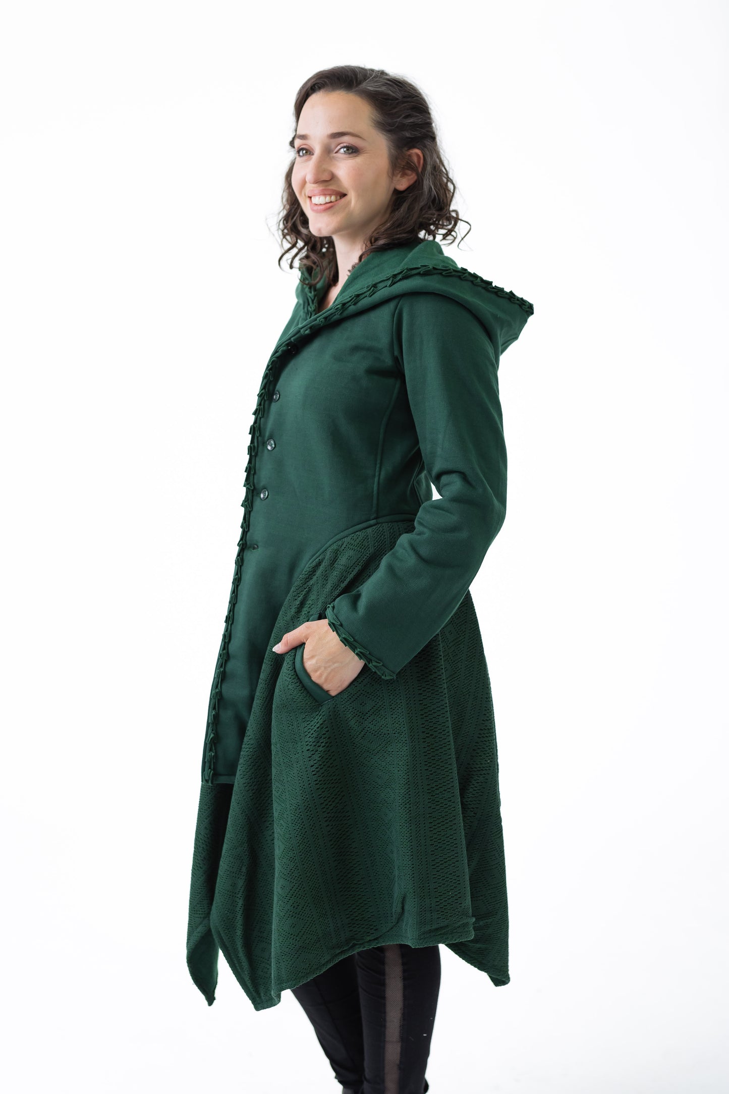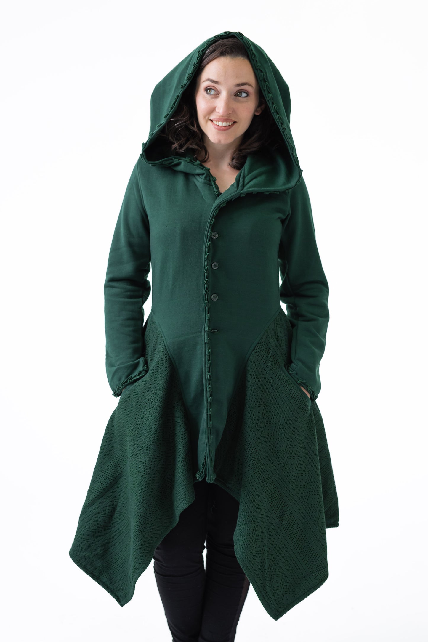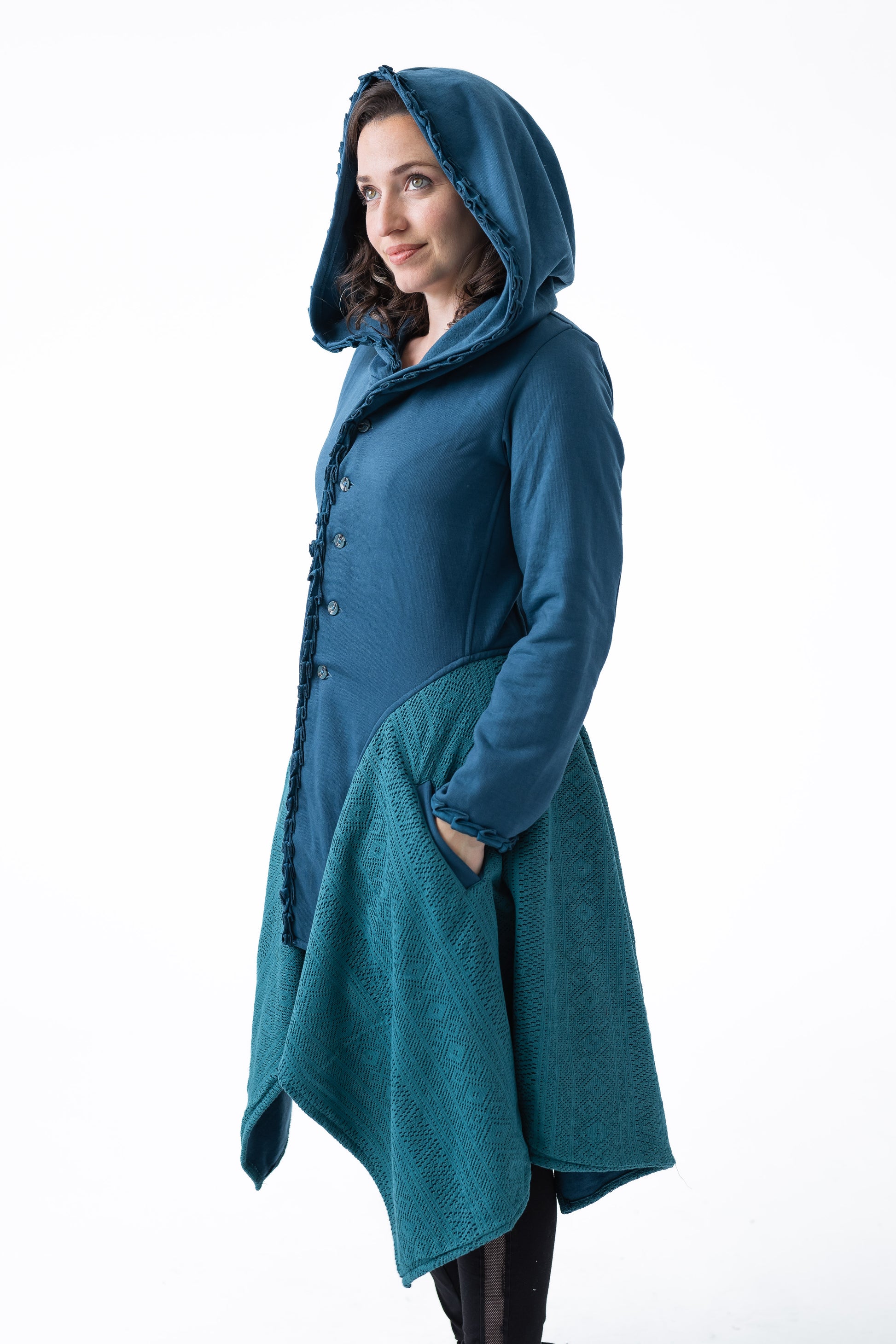 Flattering on so many bodies. This coat does have a warning... DO NOT WEAR INSIDE HOUSE... or you will forever want to come home on a cold winters day and snuggle in.