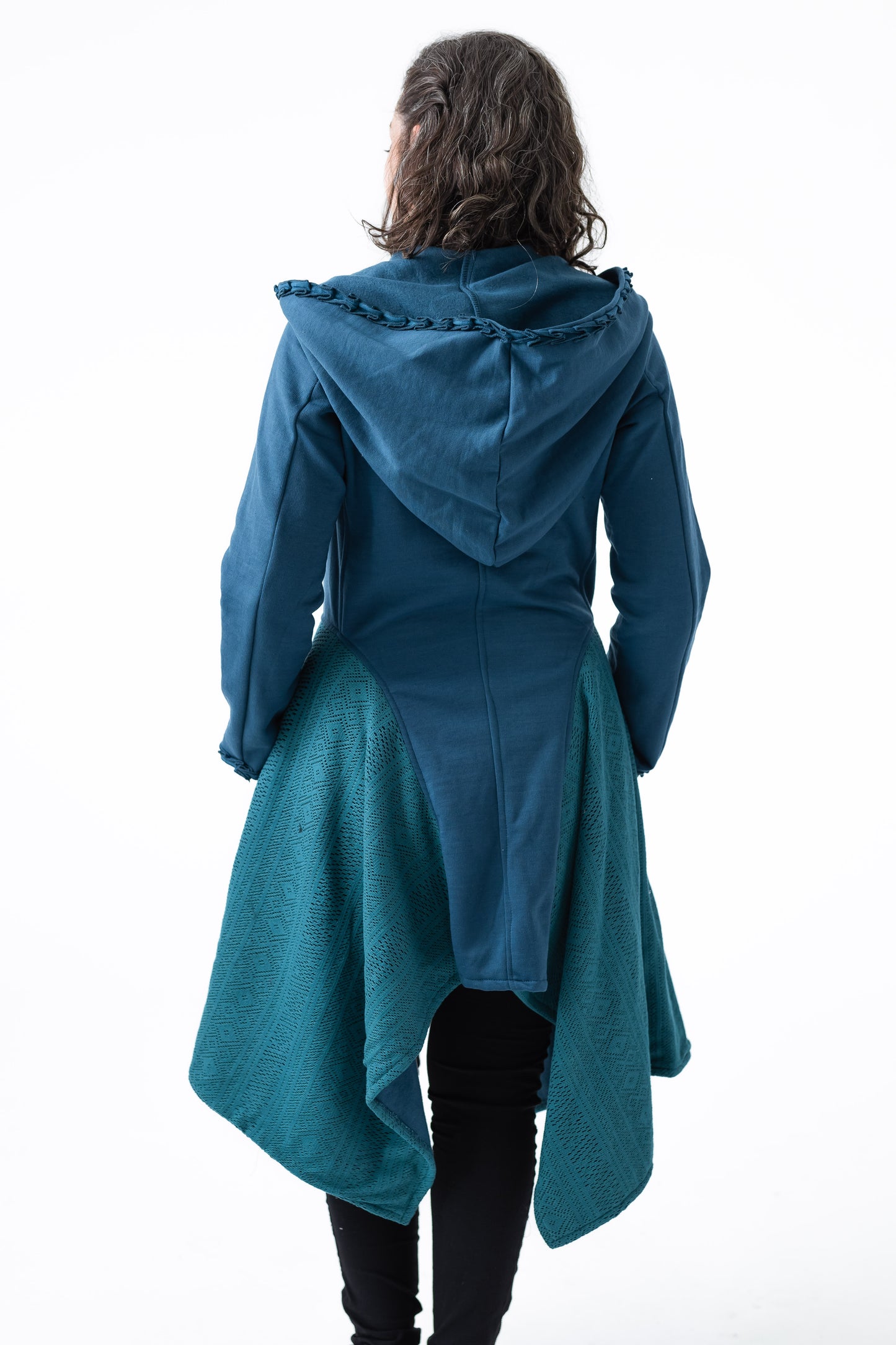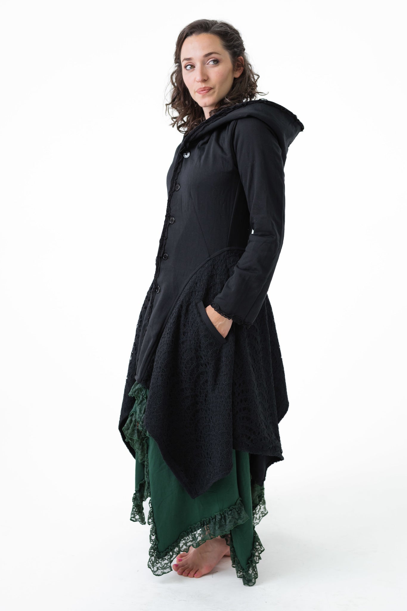 A modern twist on an old pattern. The soft cotton loop net used is washable, warm, and easy to wear. This current model is only available in black plain or black with crochet accents. Wear it with skirts for a Gothic, vintage witch look. Pair it with leggings and boots for the sexy funky look. This is a perfect addition as it will never seem dated or out of style. Every time you wear it you are guaranteed compliments and comfort.