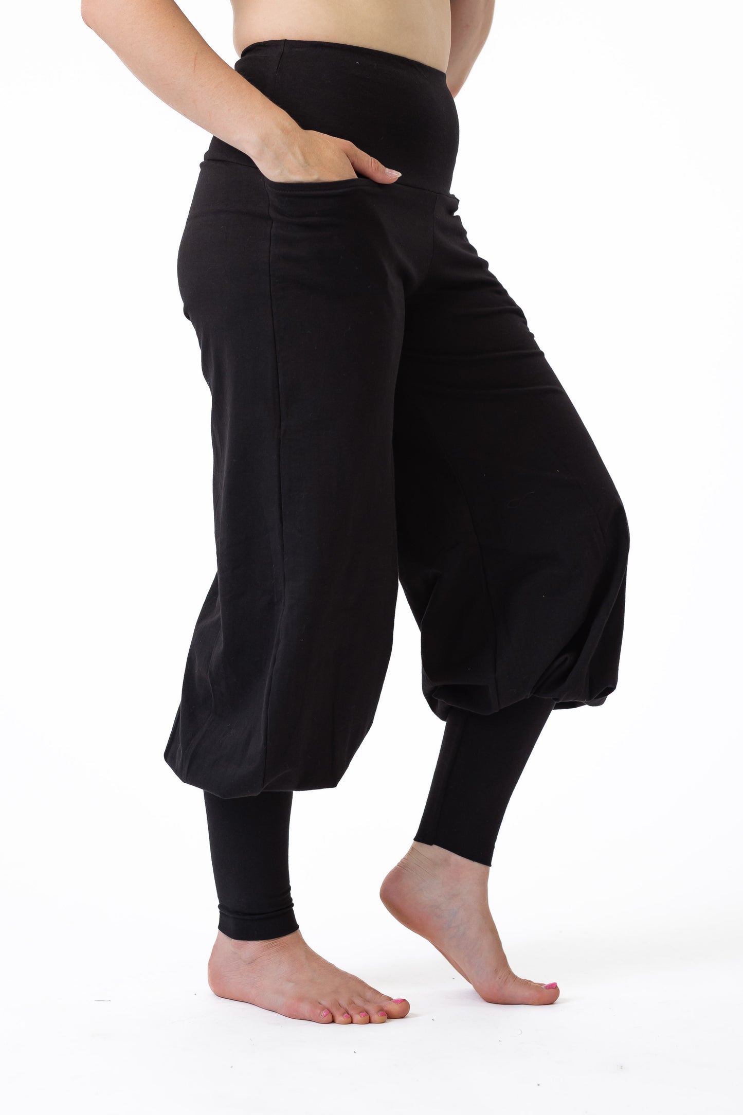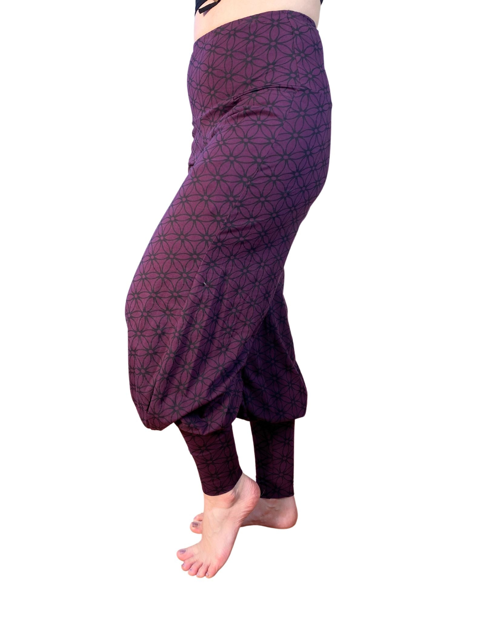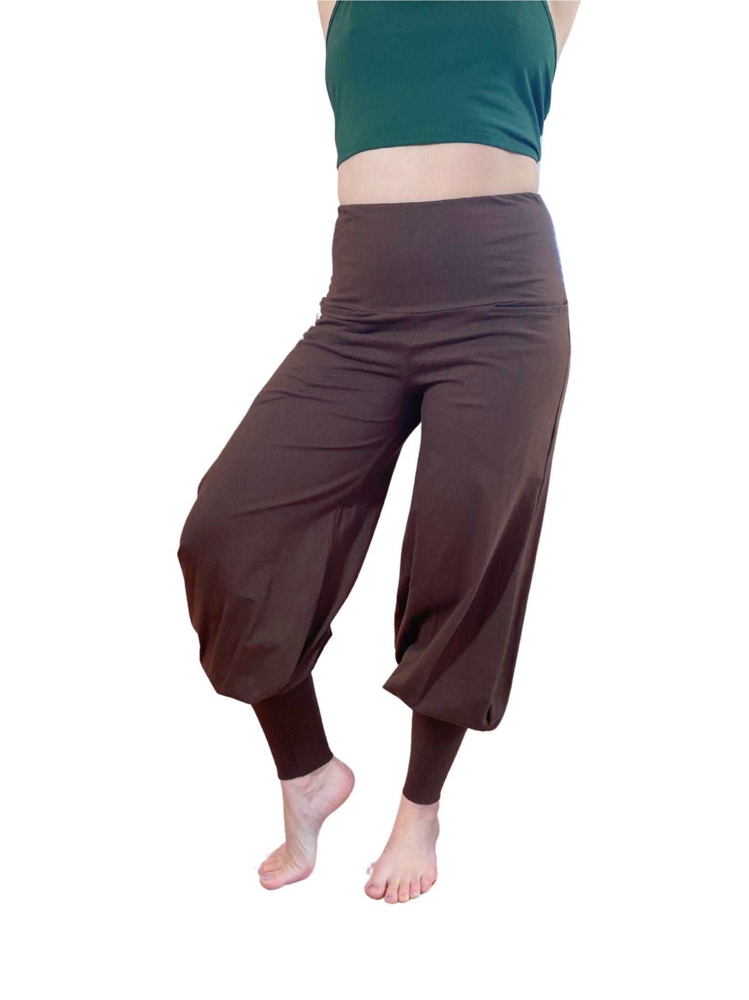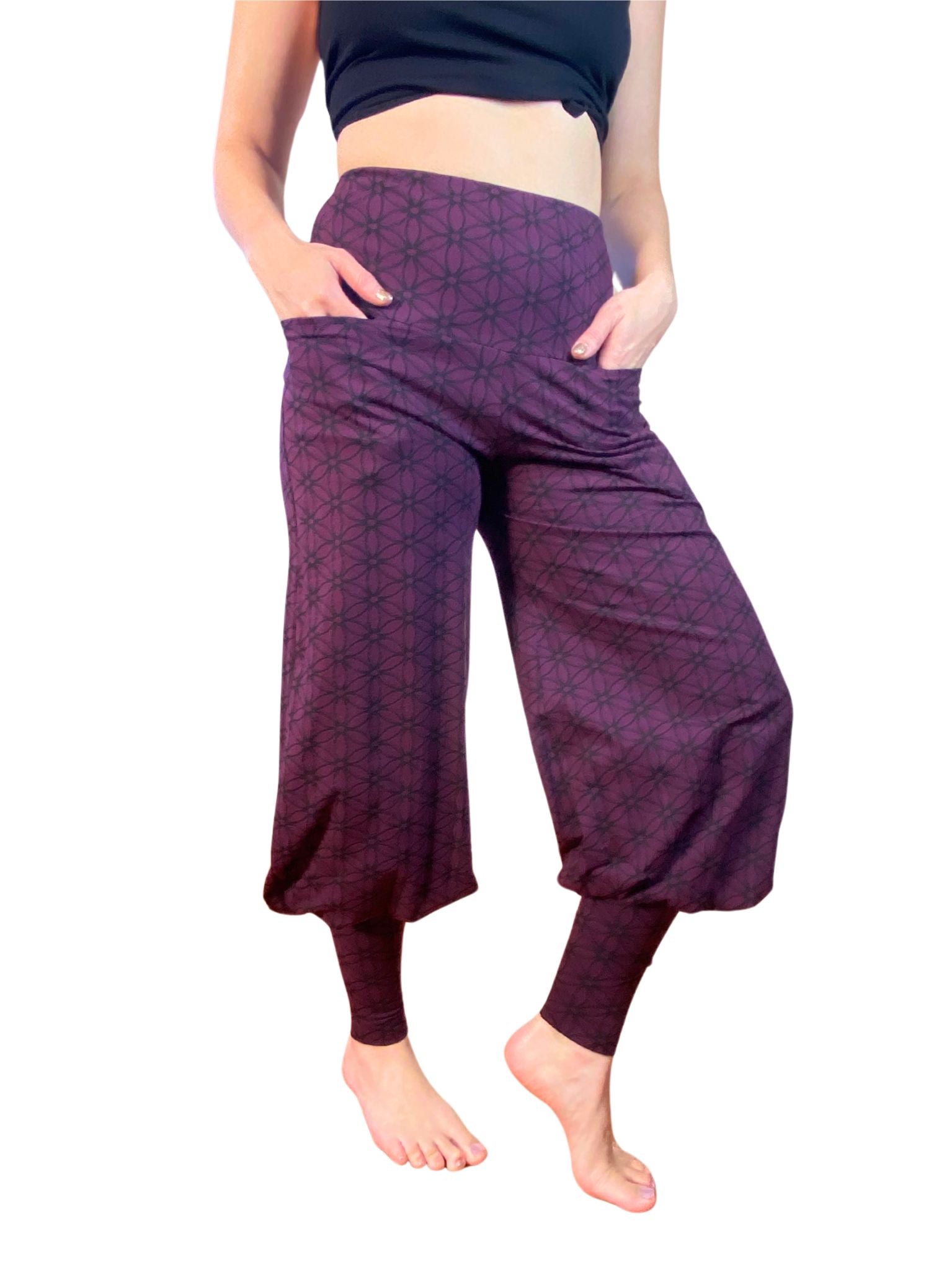 Casual, comfortable, and stylish. Our take on a very old and traditional look. We have taken this great harem pant design and combined it with the comfort of a cotton Lycra yoga pant. Looks great with boots, sandals or just bare feet. Easy to dance in, practice yoga in and of course just look hip walking around town. Warning if you wear these pants inside your house they will forever become your go to house pants!! These pants are equipped with pockets and definitely flatter the body.