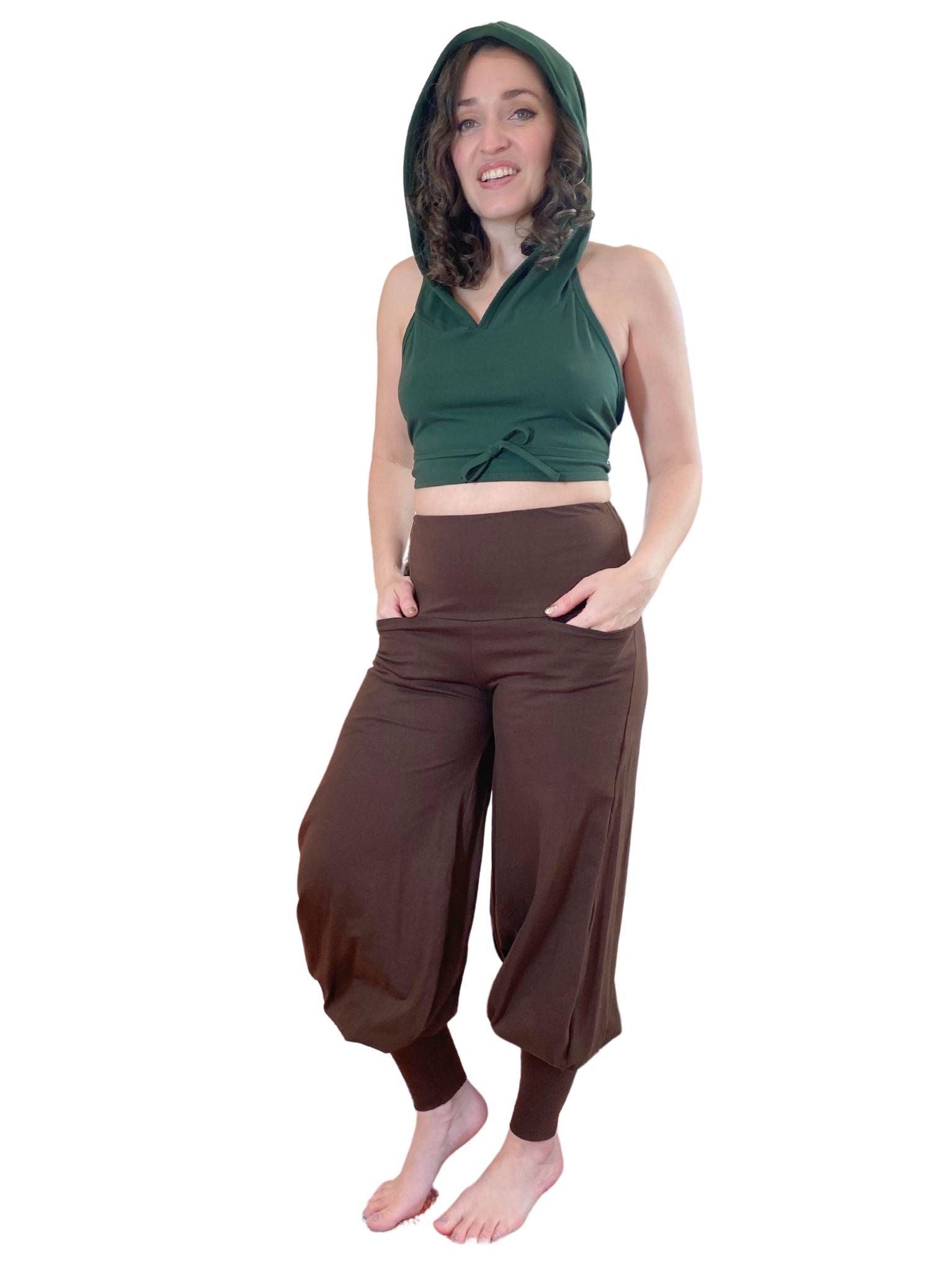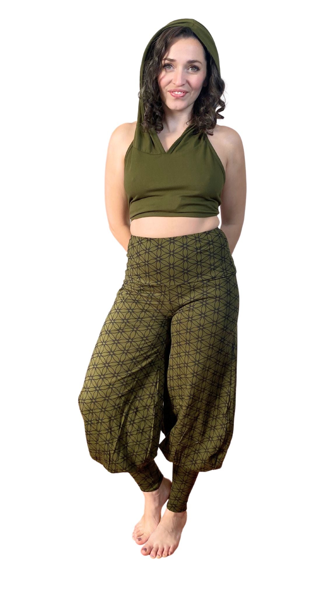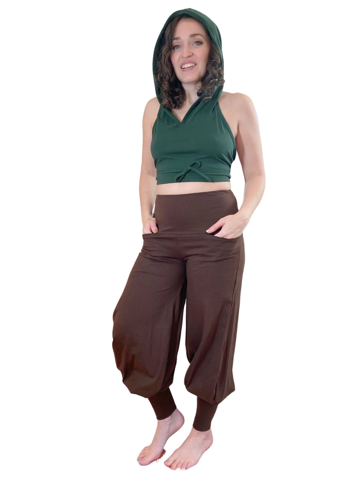 Casual, comfortable, and stylish. Our take on a very old and traditional look. We have taken this great harem pant design and combined it with the comfort of a cotton Lycra yoga pant. Looks great with boots, sandals or just bare feet. Easy to dance in, practice yoga in and of course just look hip walking around town. Warning if you wear these pants inside your house they will forever become your go to house pants!! These pants are equipped with pockets and definitely flatter the body.