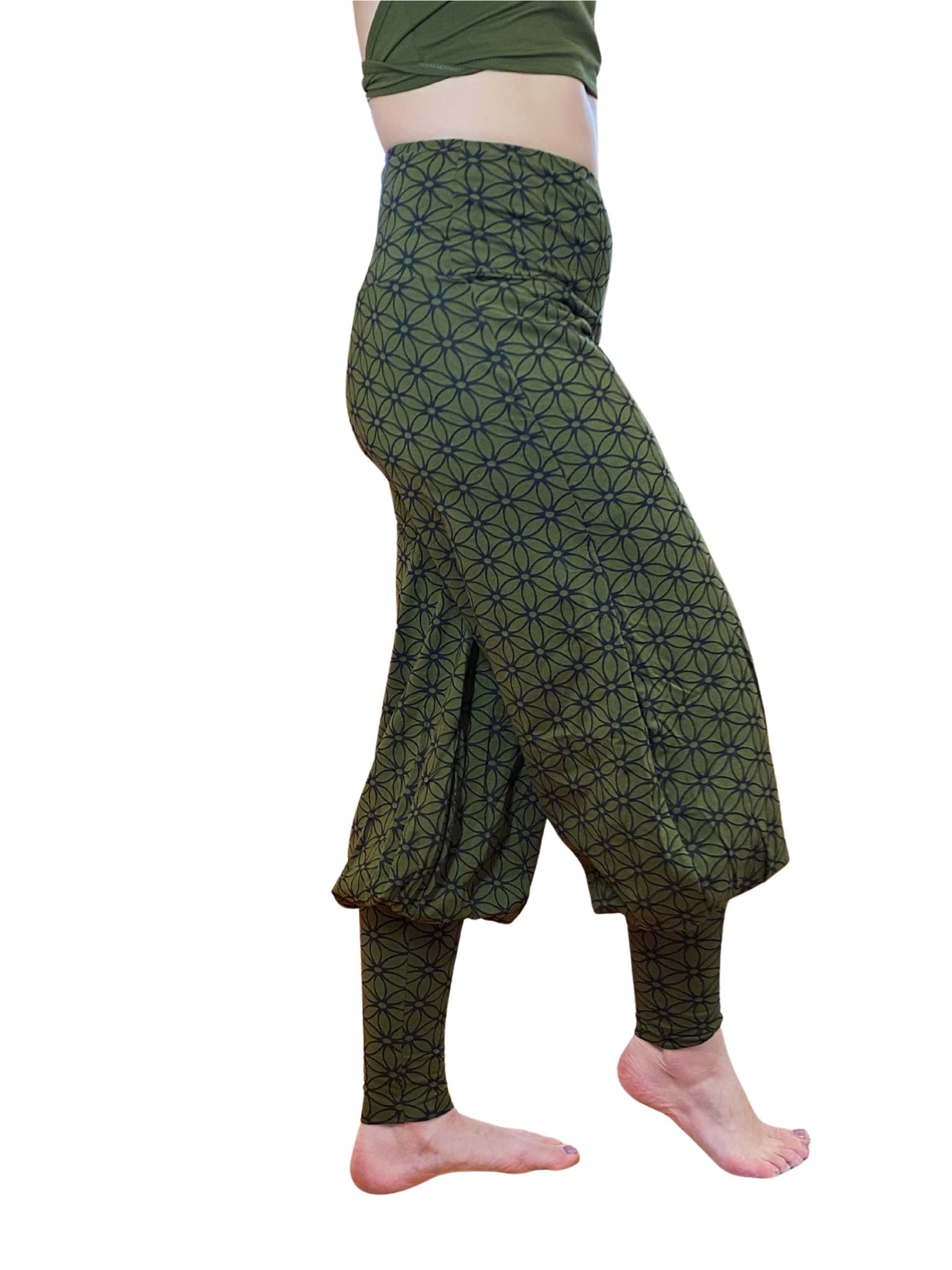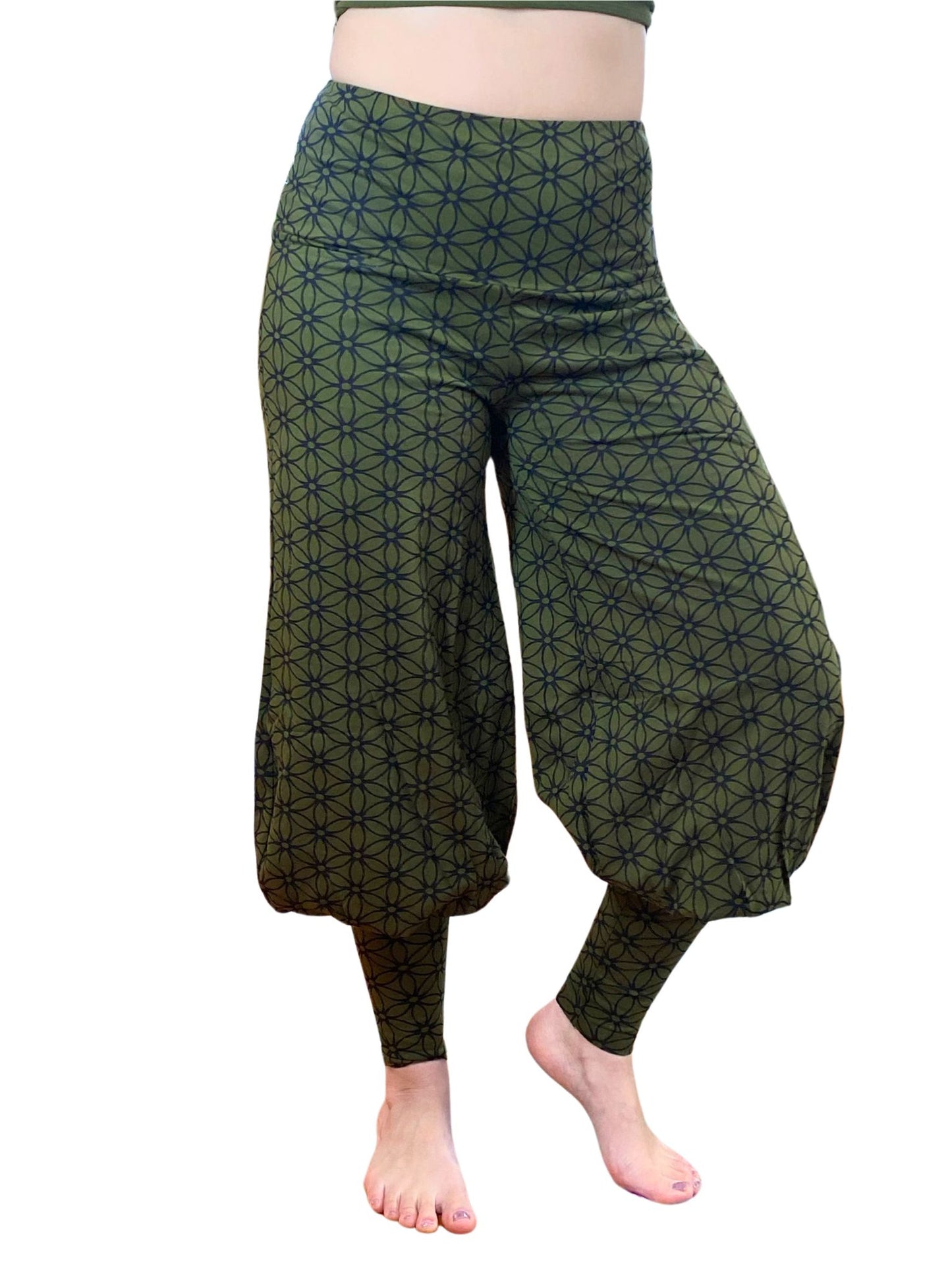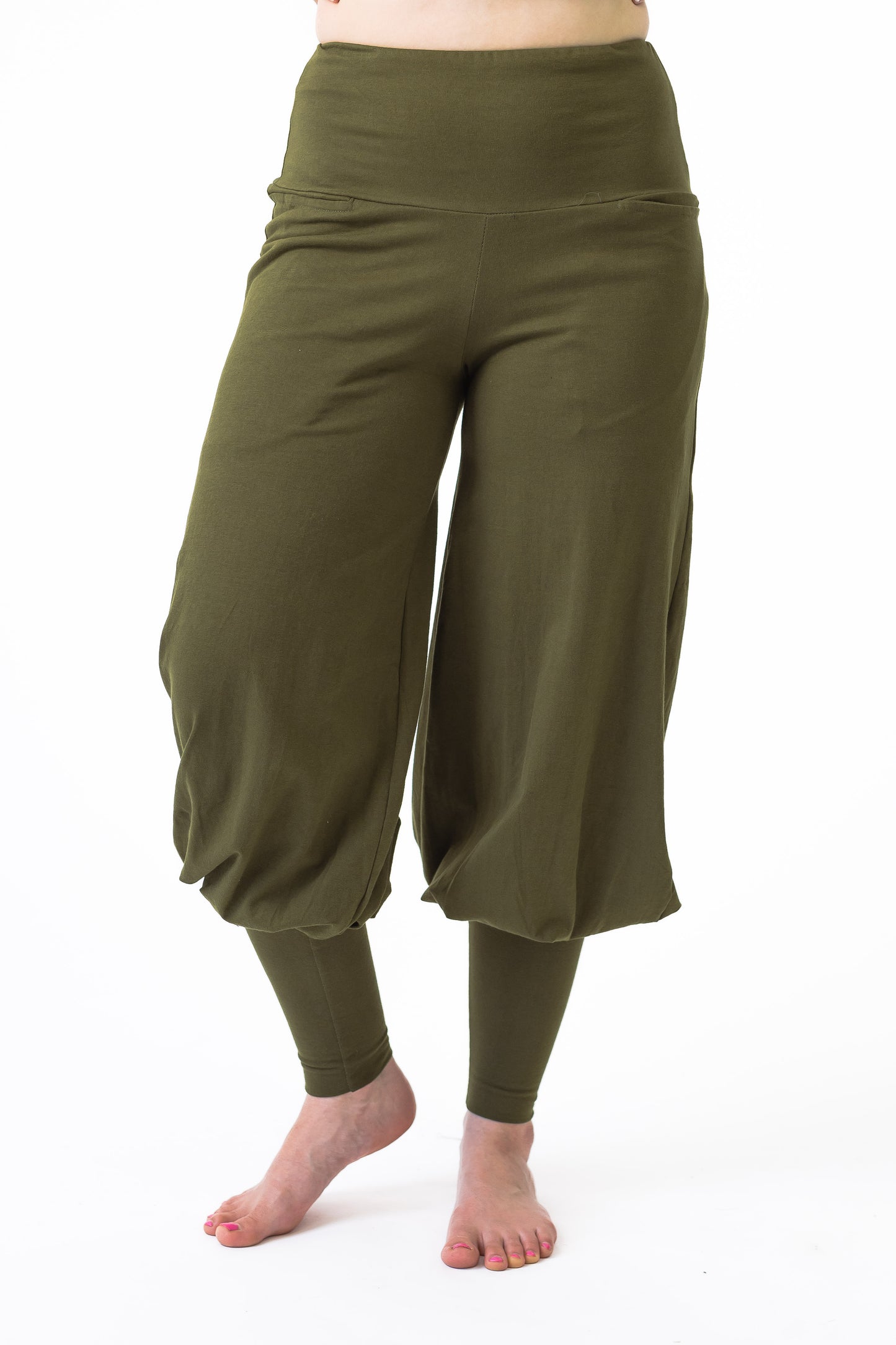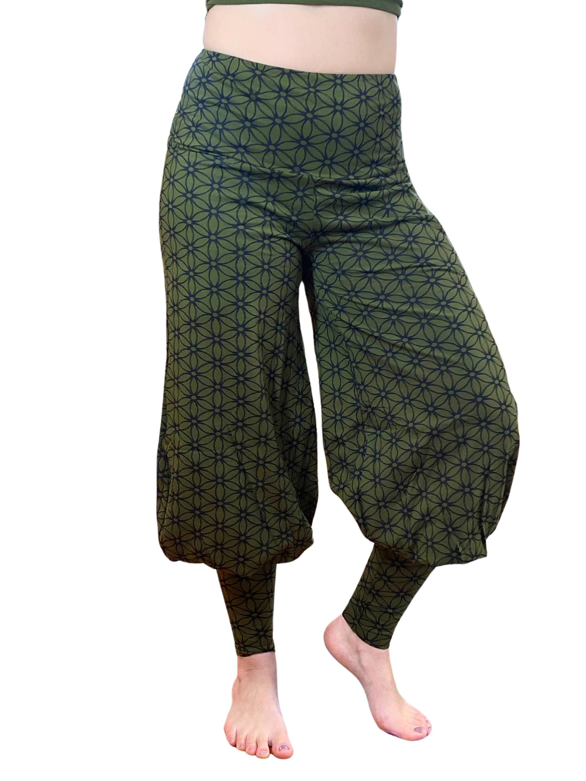 Casual, comfortable, and stylish. Our take on a very old and traditional look. We have taken this great harem pant design and combined it with the comfort of a cotton Lycra yoga pant. Looks great with boots, sandals or just bare feet. Easy to dance in, practice yoga in and of course just look hip walking around town. Warning if you wear these pants inside your house they will forever become your go to house pants!! These pants are equipped with pockets and definitely flatter the body.