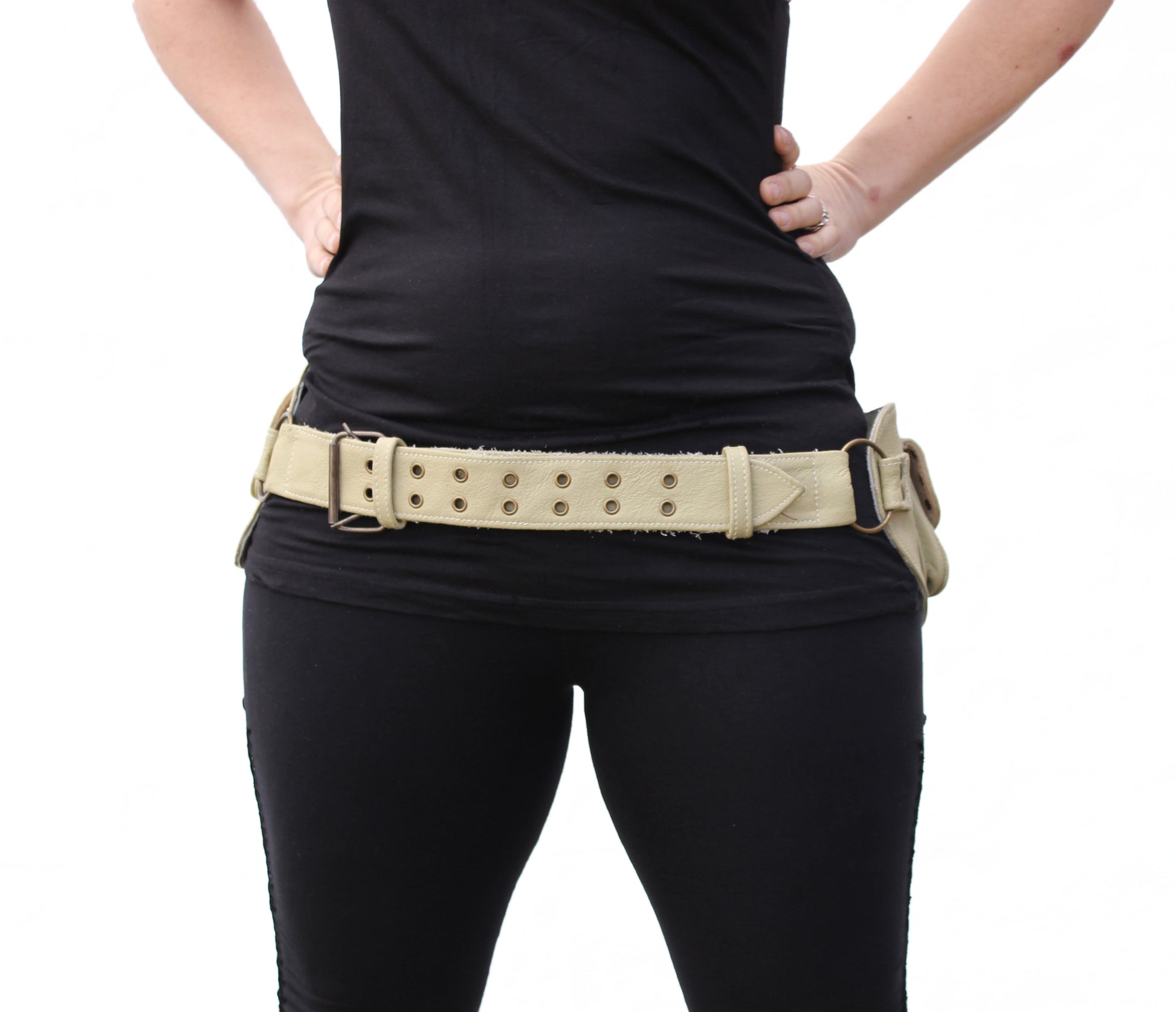 A low profile leather pocket belt, mainly to hold money and ID. A sexy look, with function.