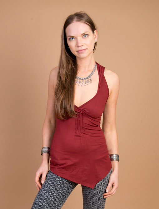 A fantastic option for the dancers, the pixies, and the hoopers in our midst! Form fitting, stretchy, and sexy, Hooded Pixie Top comes down to a point in the front and back, has a halter neck, and shows off your back. A long time Mishu favorite!